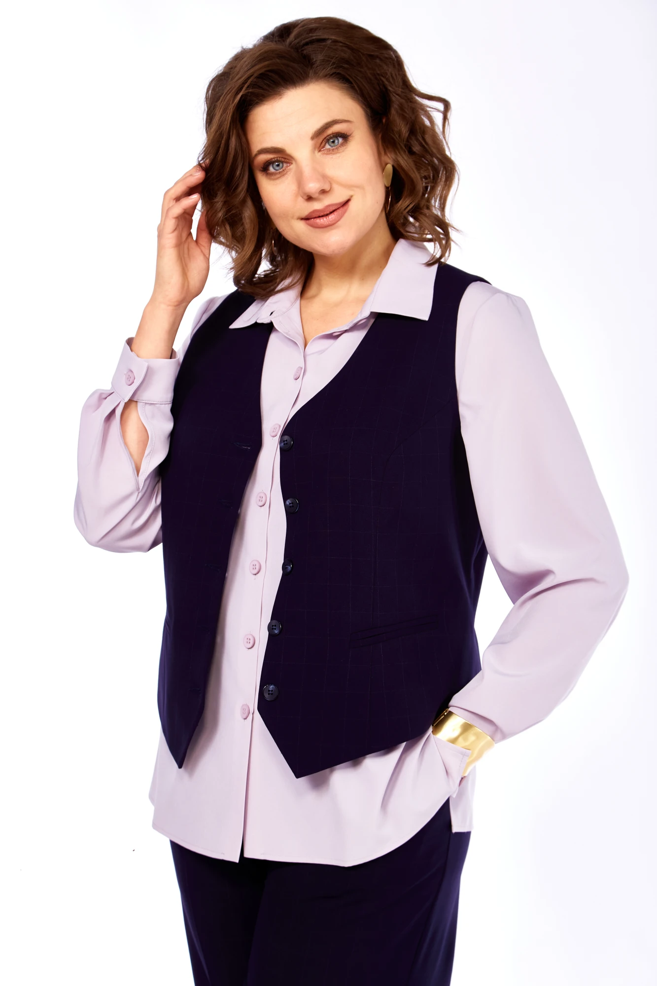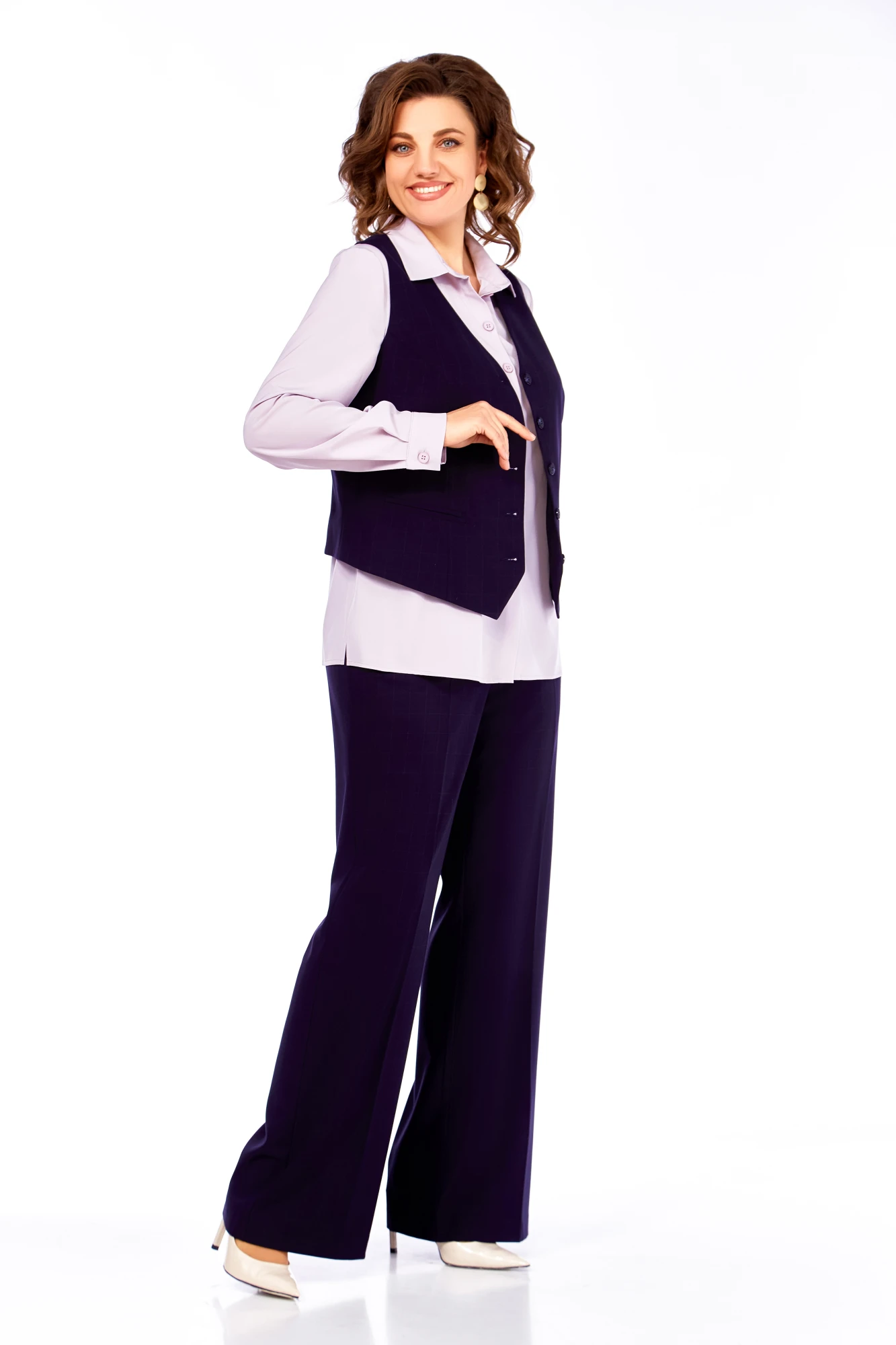 Брючный костюм Ольга Стиль 979 темно-синий-клетка тройка