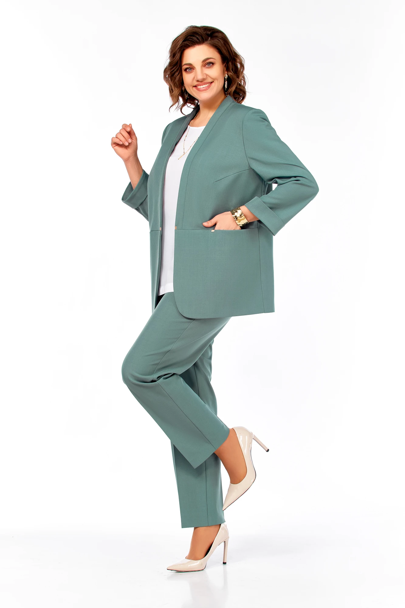 Брючный костюм Ольга Стиль С-1000 мятный тройка