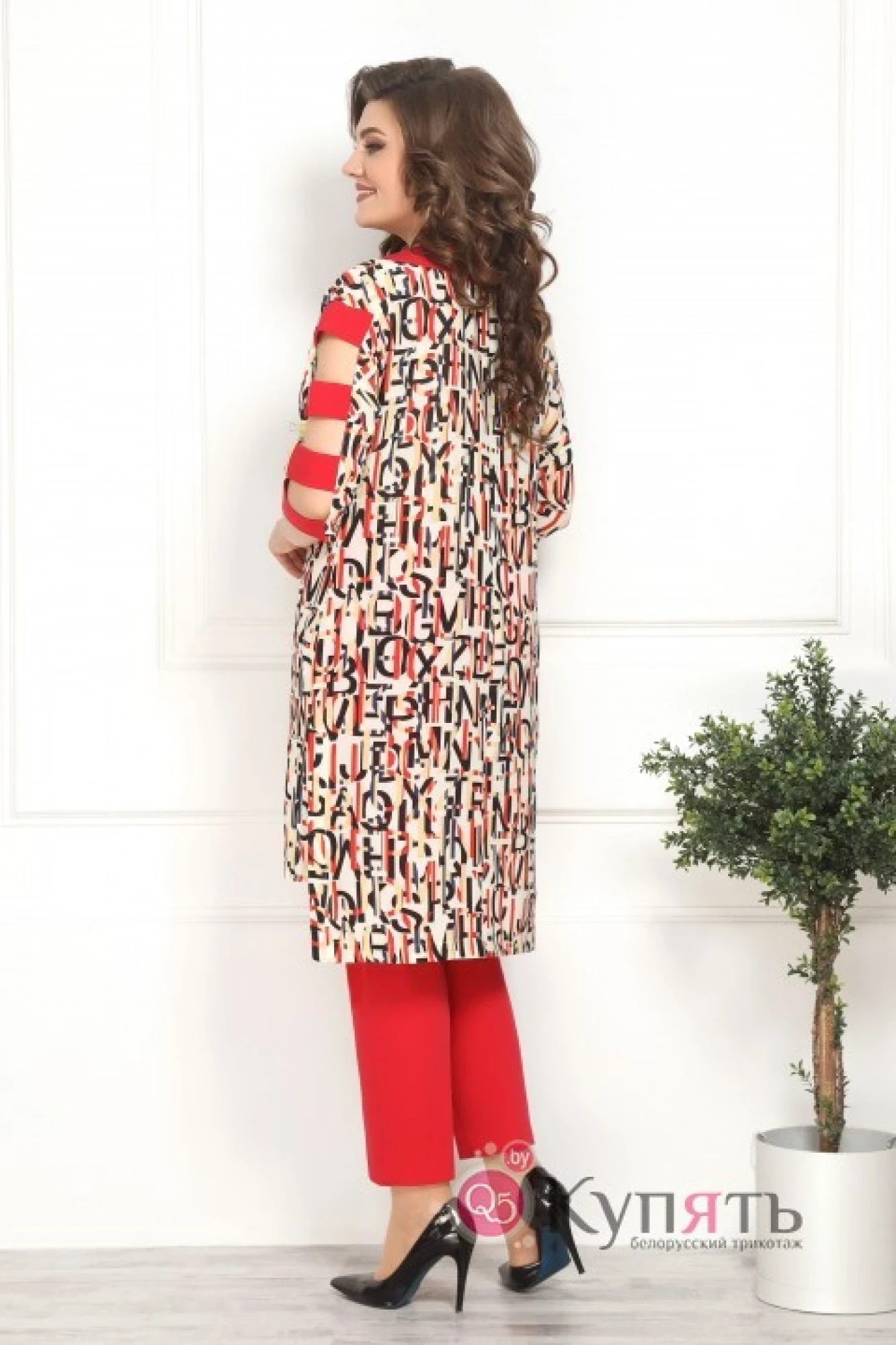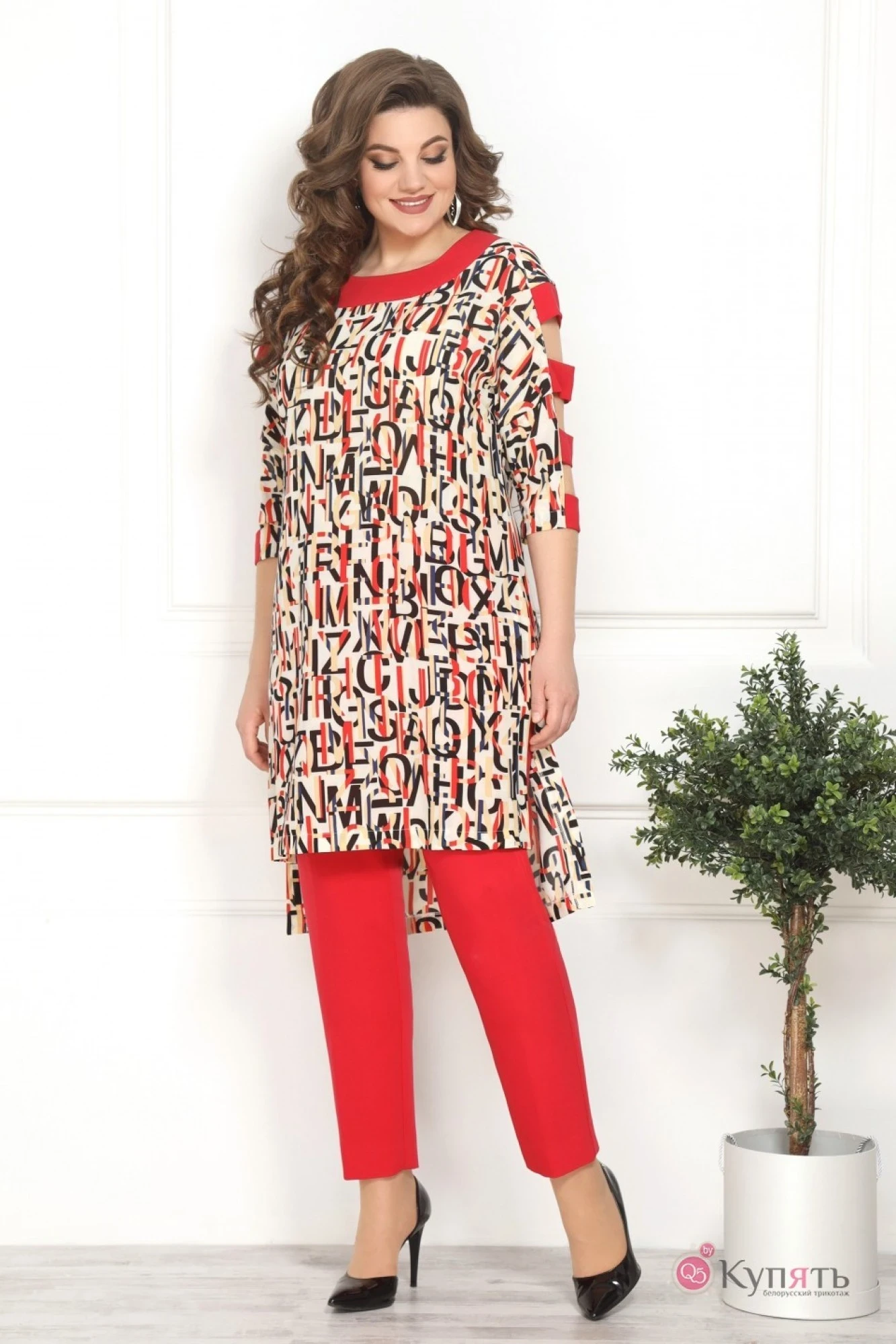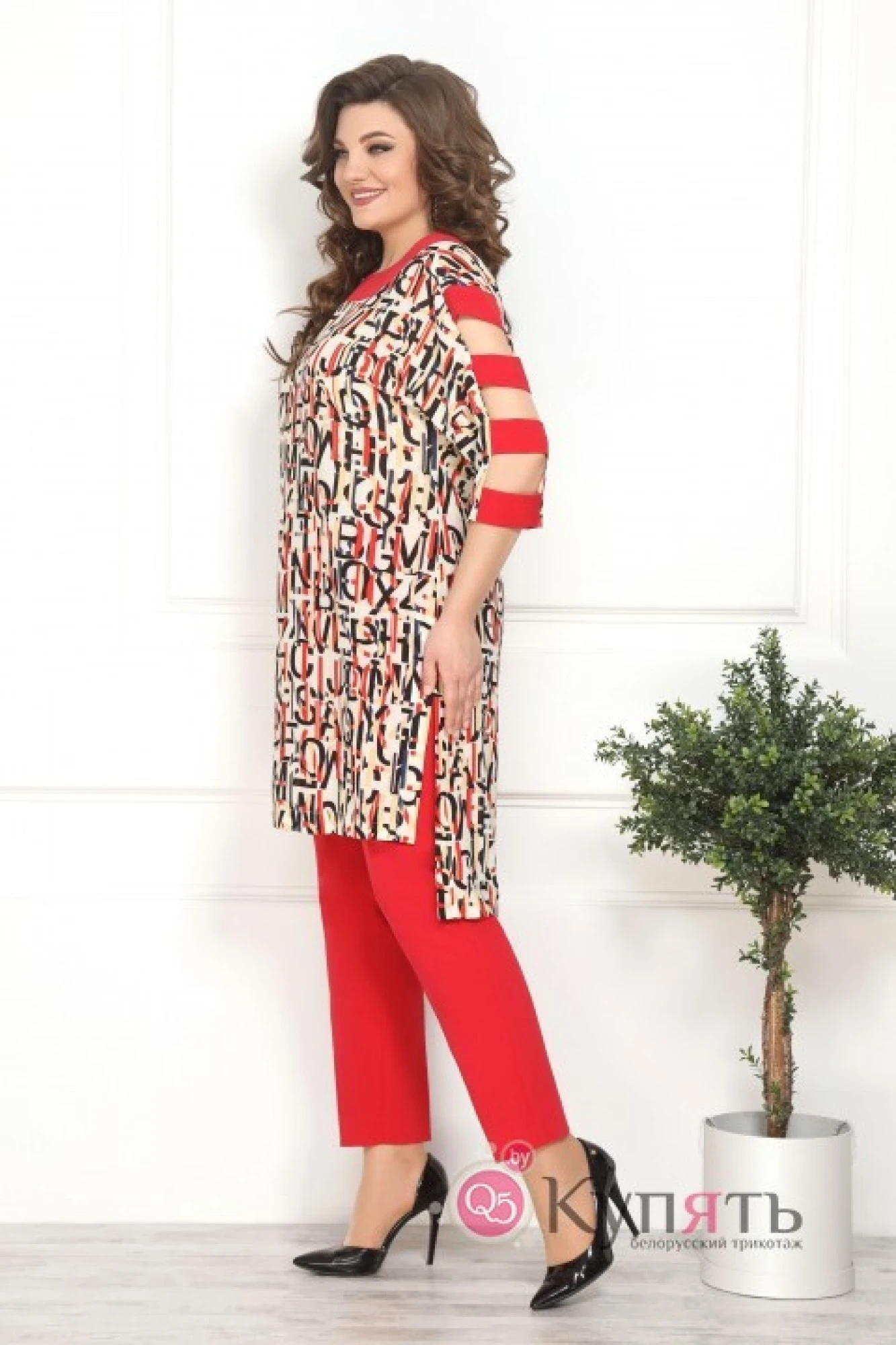 Блузка-полиэстер 100%, брюки-полиэстер 71%, вискоза 23%, спандекс 6%