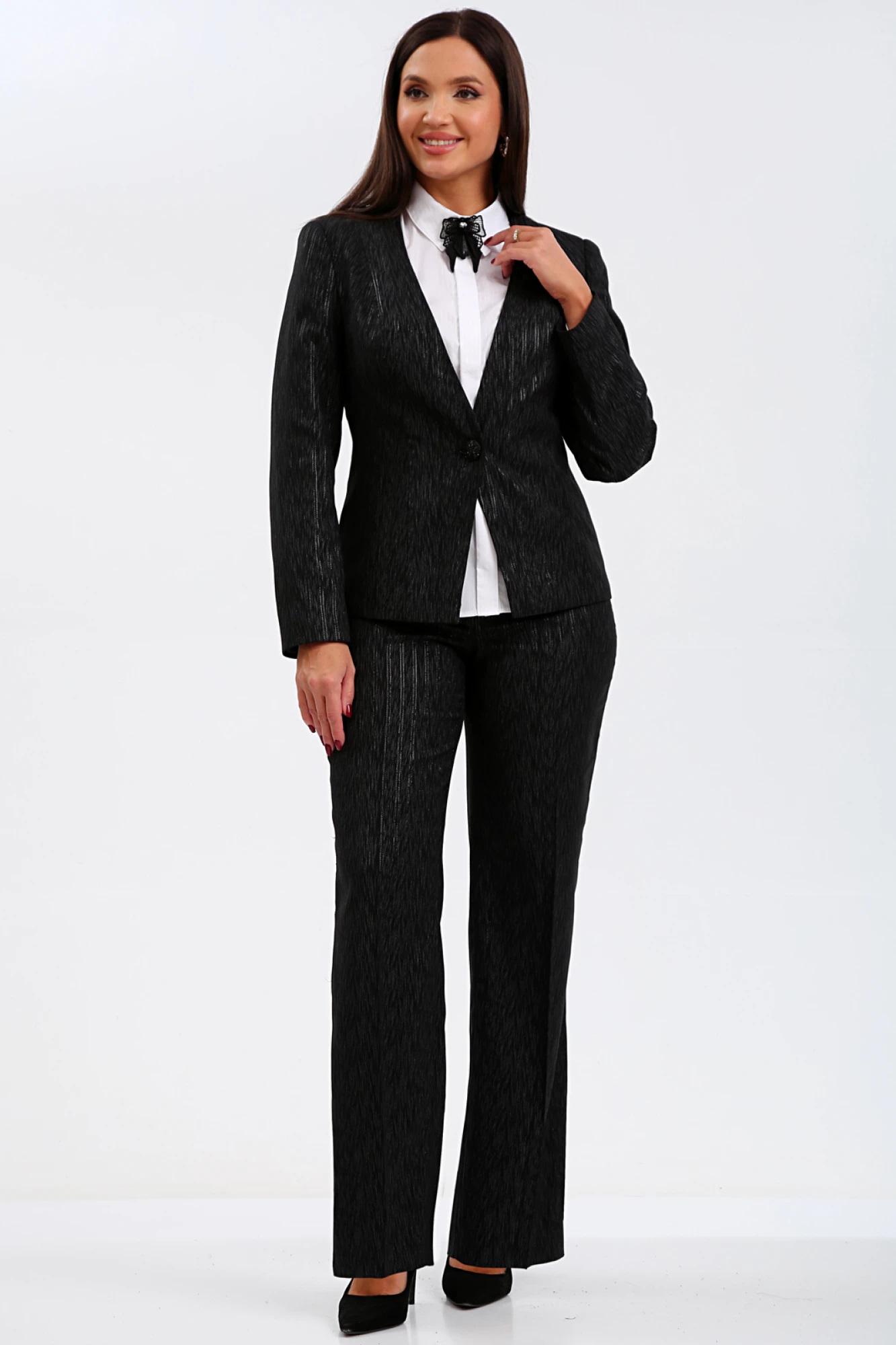 Брюки имеют классический прямой крой и удобный пояс, что делает их универсальными для сочетания с различными блузками и топами. Этот костюм идеально подходит для создания стильного образа как в деловой обстановке, так и на вечерних мероприятиях. Не упустите возможность добавить этот модный элемент в свой гардероб!