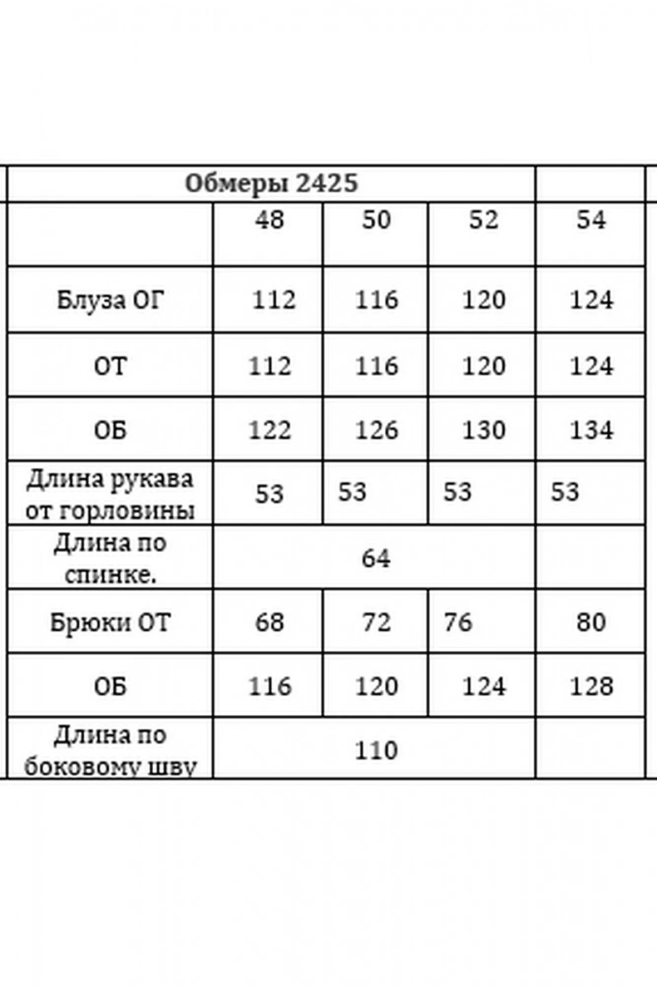 Таблица размеров