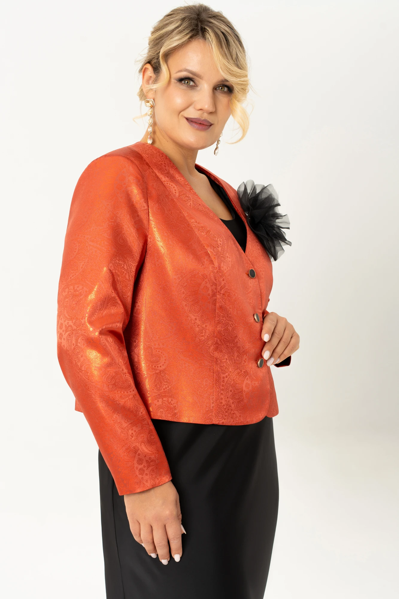 Элегантный женский комплект «двойка» больших размеров — идеальный выбор для женщин с пышными формами, который сочетает в себе комфорт, стиль и изящество. Модель состоит из двух элементов: лаконичного платья из струящегося атласа, кроеного по косой и короткого жакета, полуприлегающего силуэта на подкладке. Такой тандем создает утонченный и женственный образ, который прекрасно подойдет как для вечерних выходов, торжеств, так и для повседневного ношения или работы в офисе. Жакет полуприлегающего силуэта, с центральной застёжкой на петли и пуговицы и с рельефами от плеча по переду, закругленный низ борта. Спинка в жакете со средним швом . Рукав втачной, двухшовный, длинный. Платье кроенное по косой, что обеспечивает красивую посадку и мягкое облегание по фигуре. Углубленная горловина добавляет лёгкой чувственности, а нагрудные вытачки от проймы подчёркивают линию груди. В комплекте идет съемный цветок- брошь.