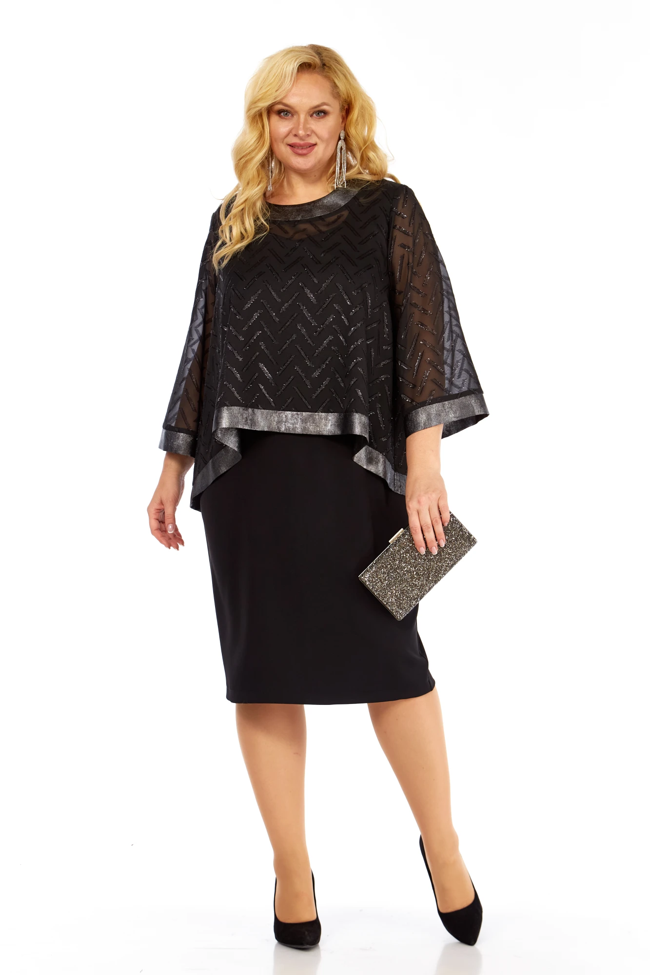 Нарядный женский двухпредметный комплект состоит из блузы ,выполненной из шифона двух видов,и платья,выполненного из однотонной плательно-костюмной ткани.