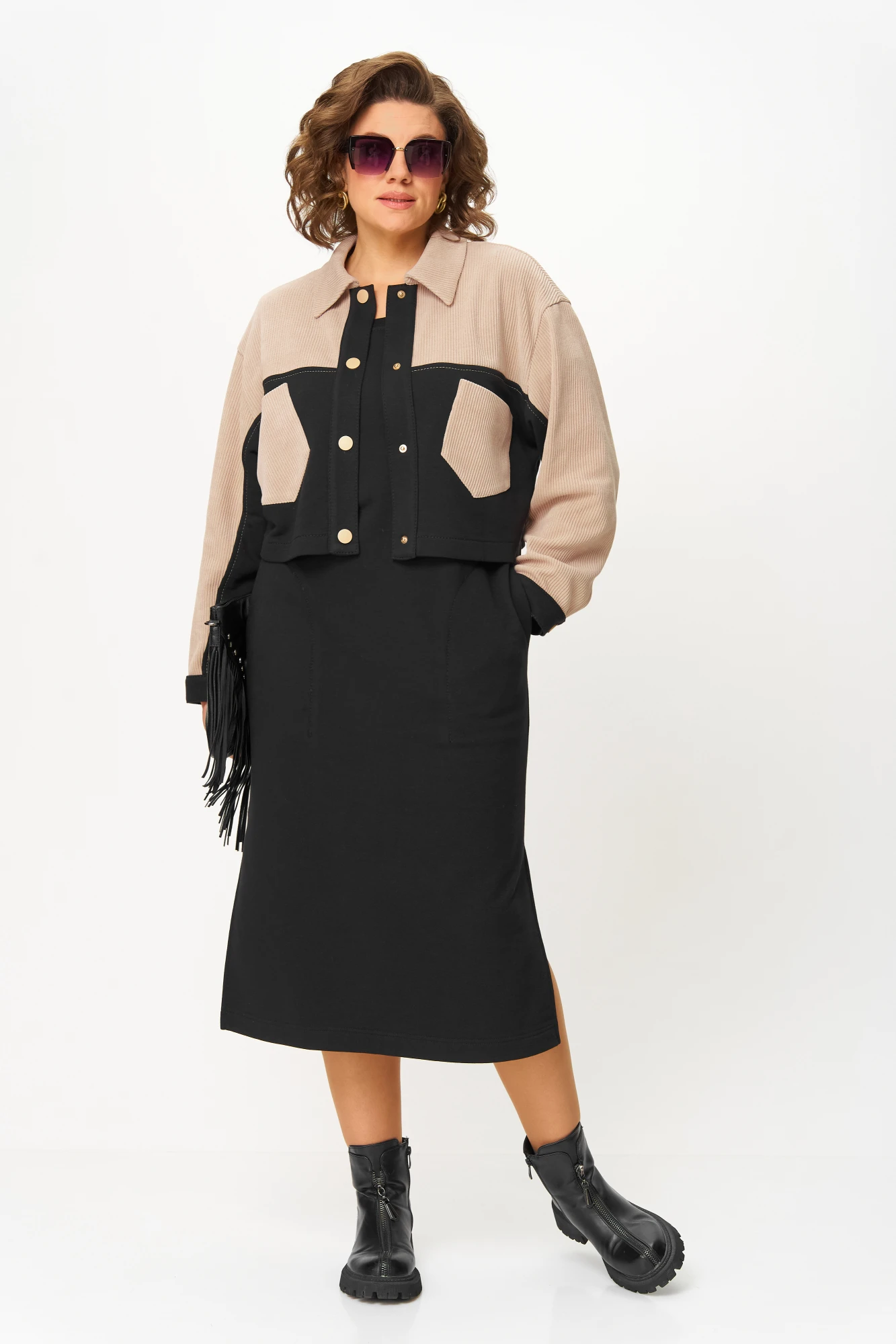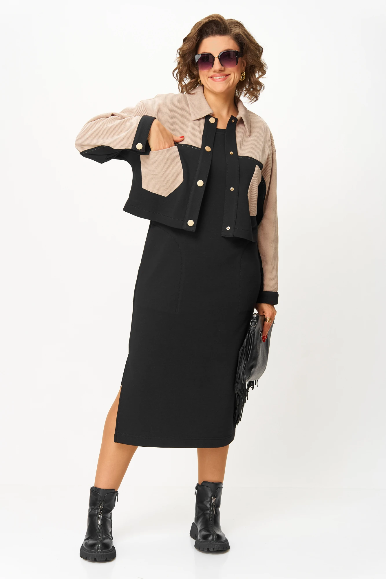 Костюм с платьем Карина Делюкс 1397 черно-бежевый