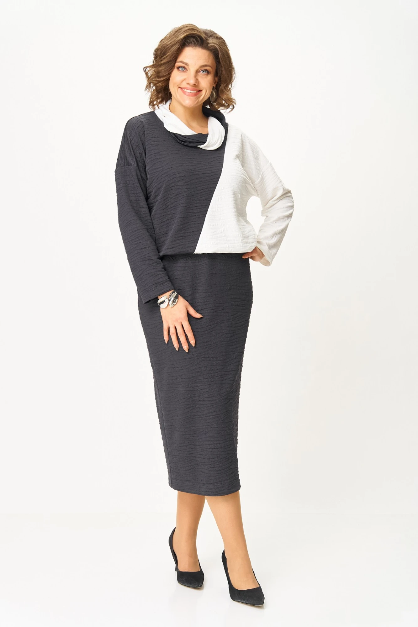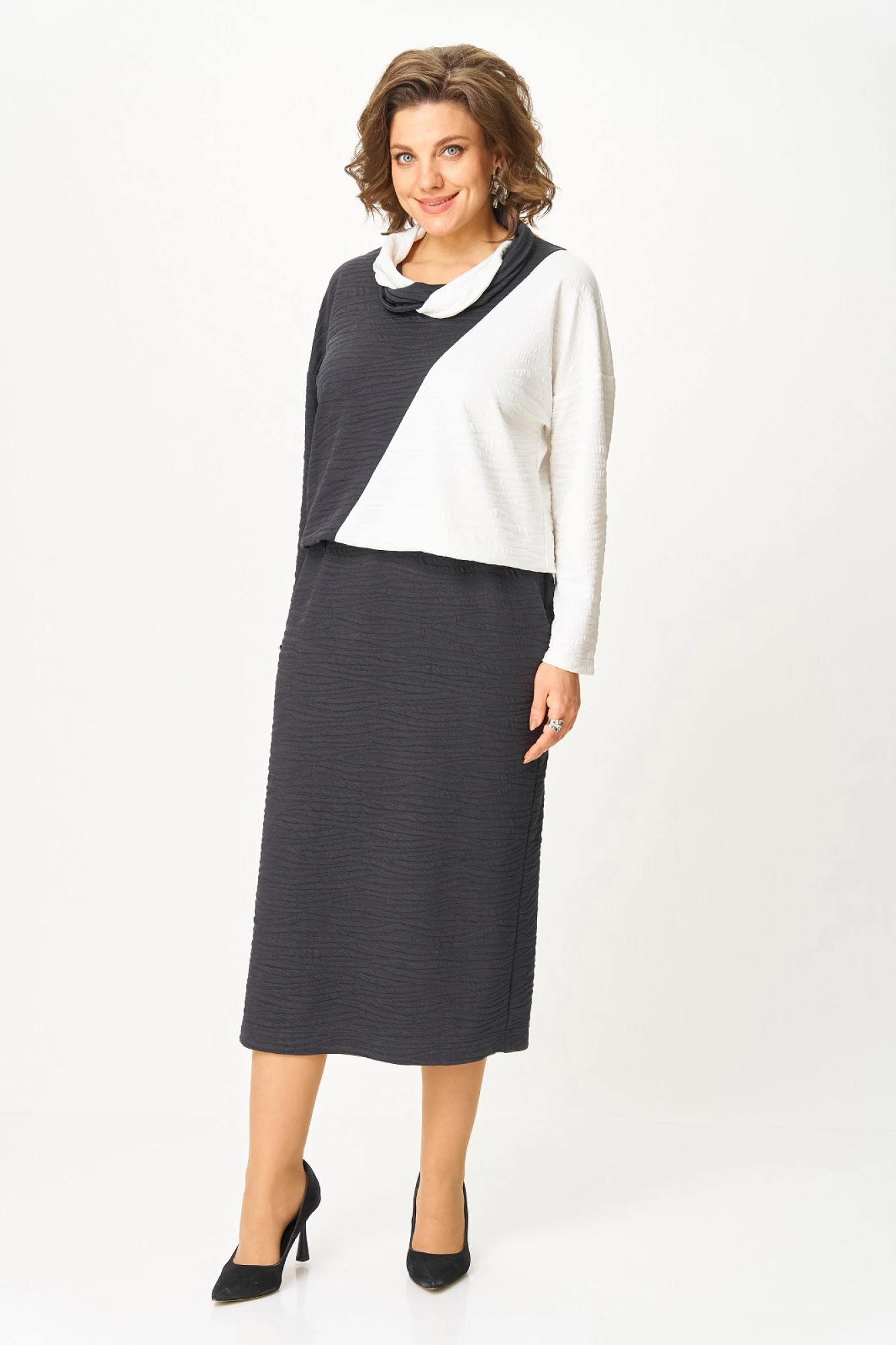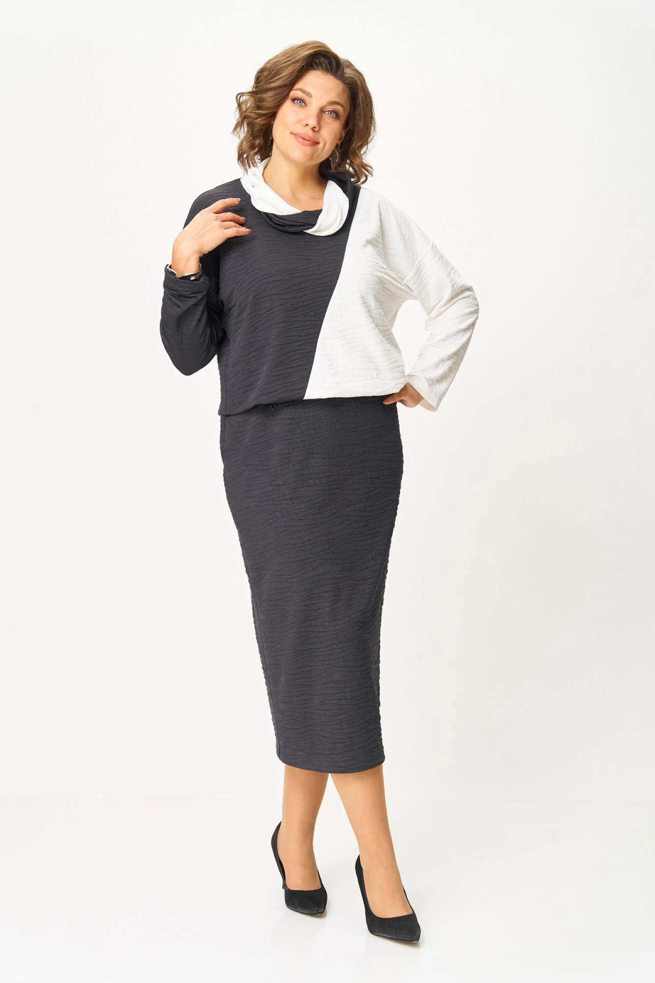 Костюм с платьем Кокетка и К 1322 серый+белый