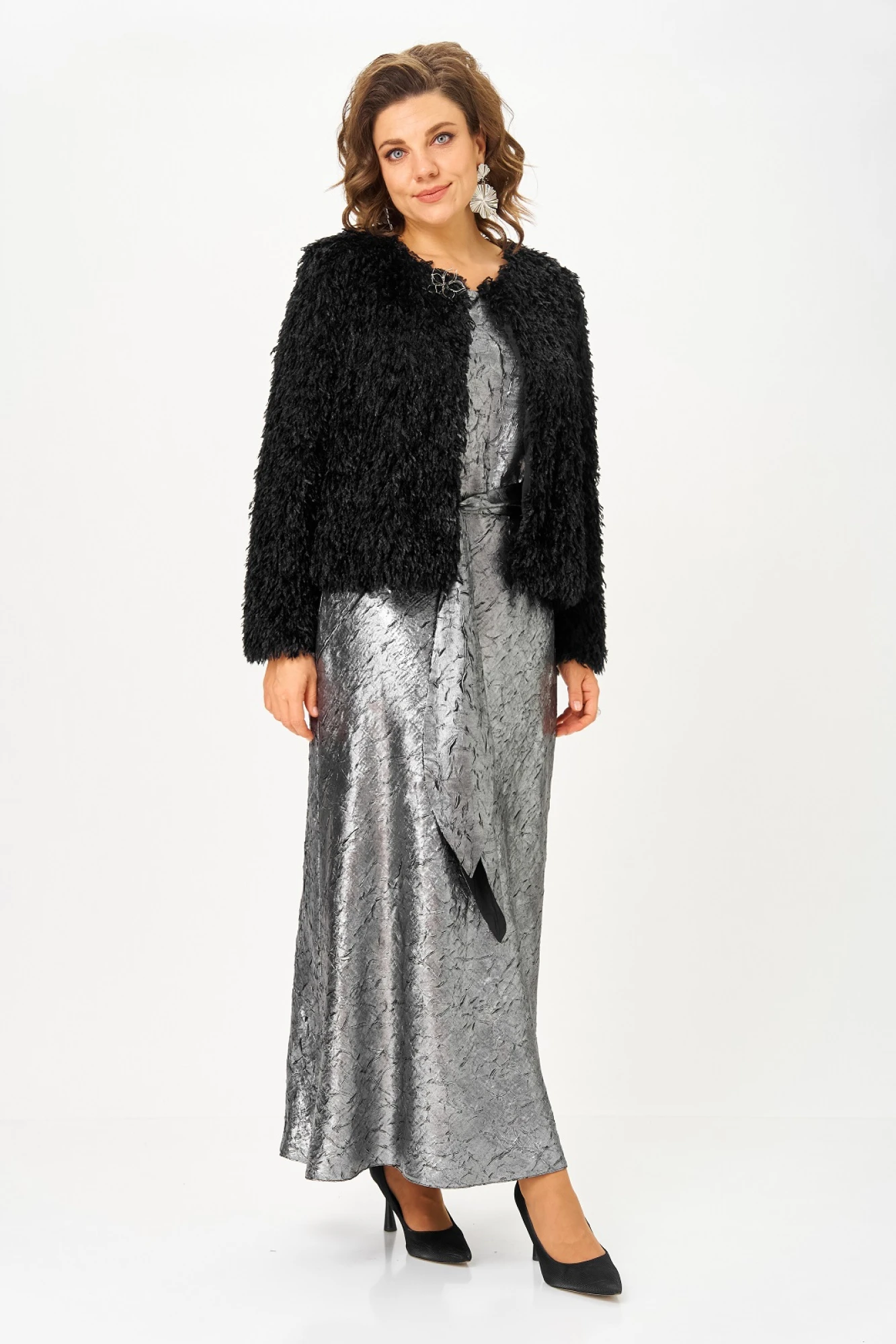 Костюм с платьем Кокетка и К 1332 серебристый+черный двойка