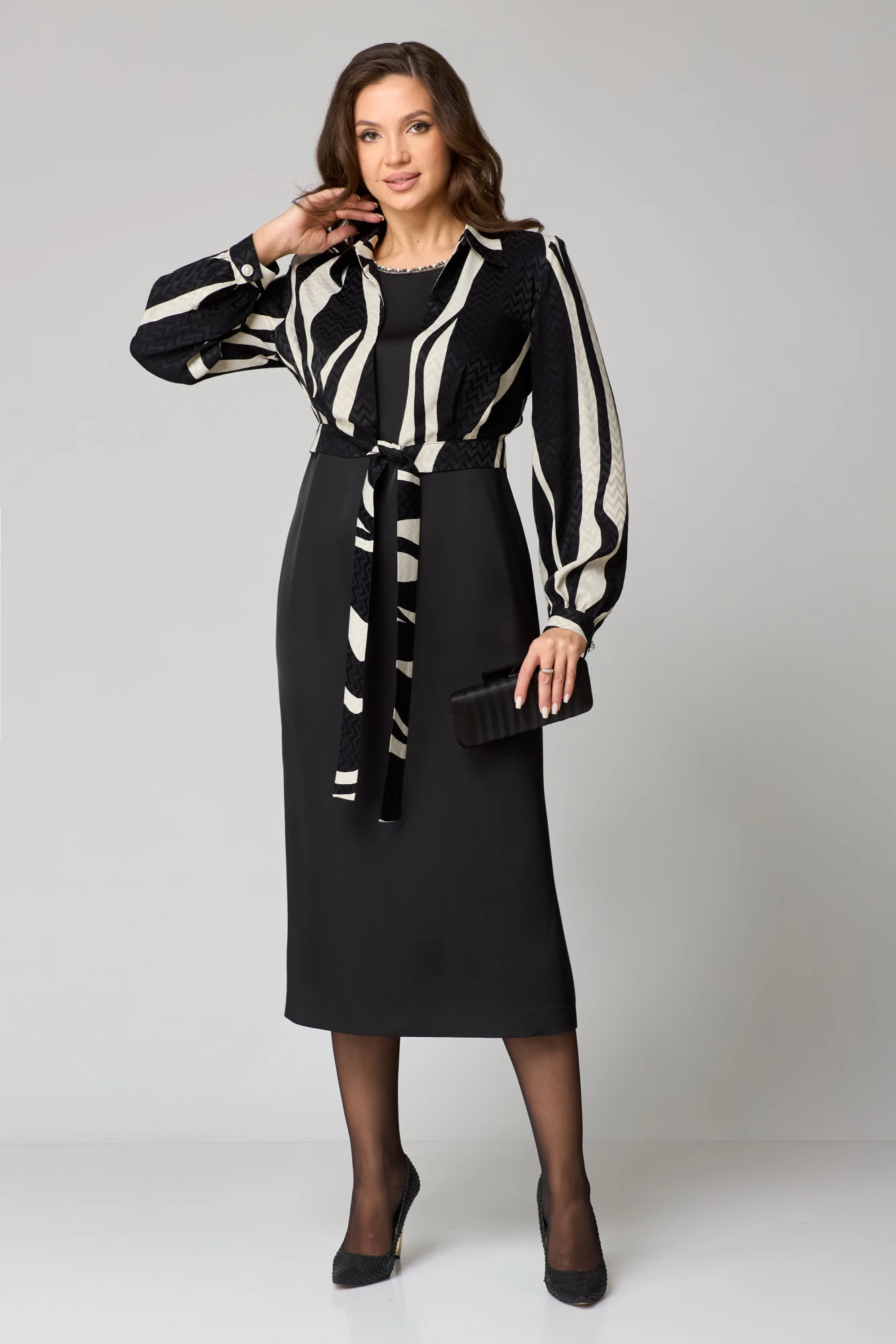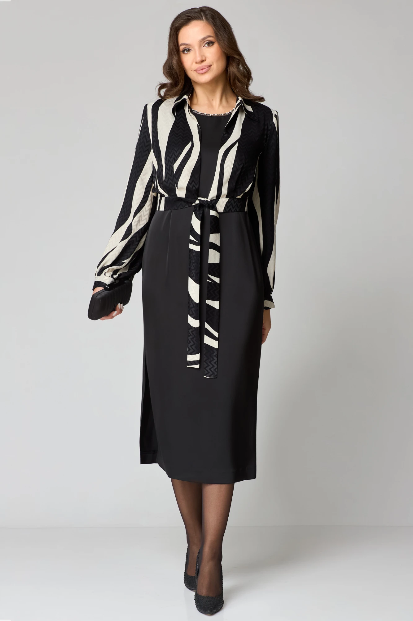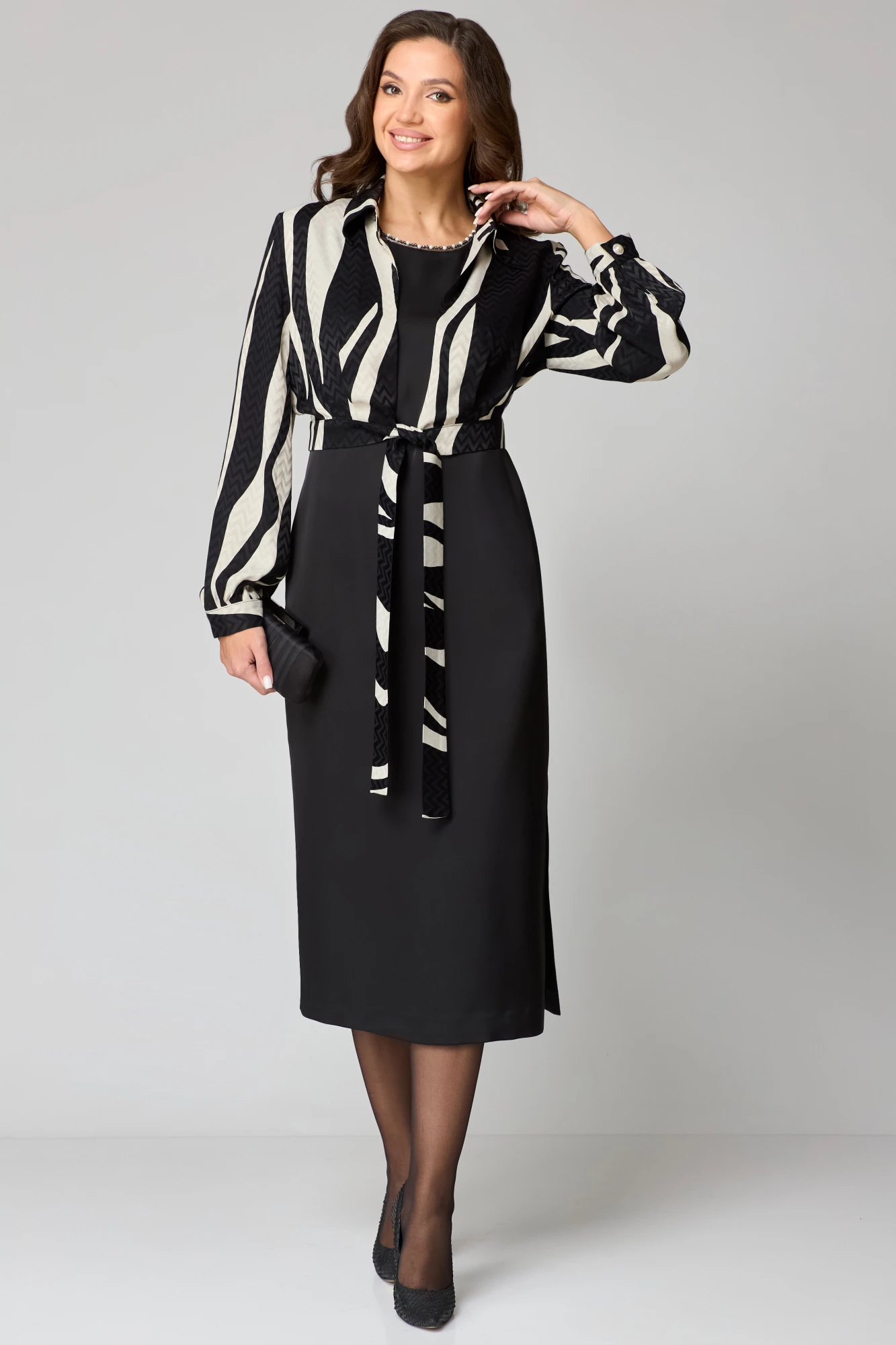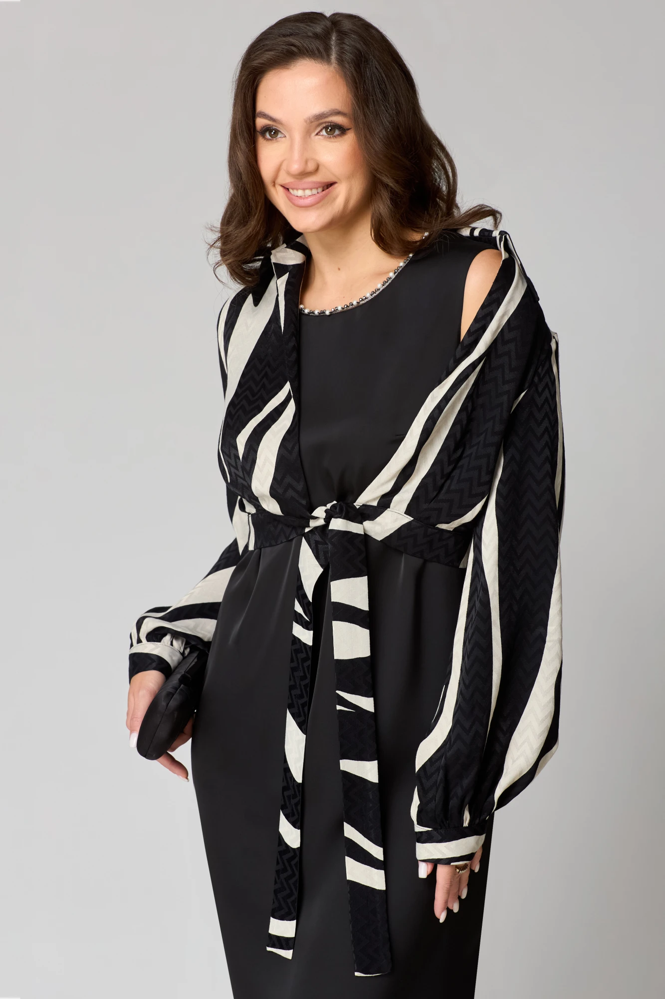 Костюм с платьем Мишель Стиль 1230 черно-молочный двойка