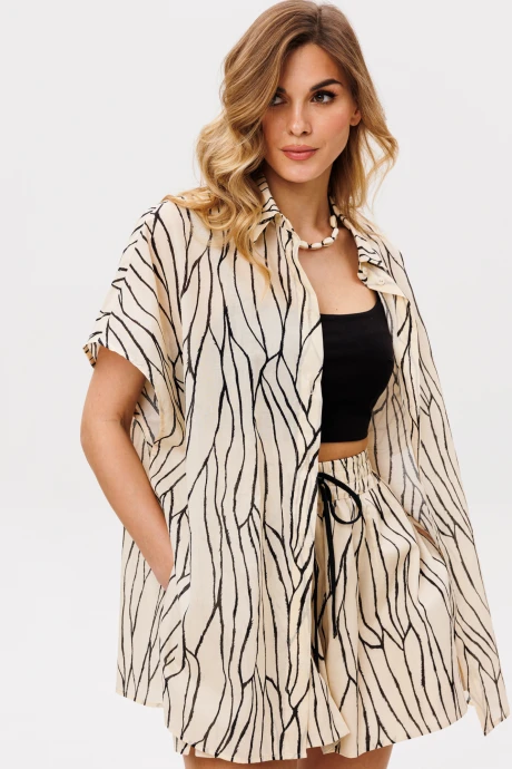 Костюм с шортами EOLA 2853 бежевый с черным принтом