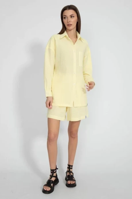 Костюм состоящий из рубашки и шорт. Нежная натуральная хлопковая ткань - муслин. Шорты свободного кроя с карманами в боковых швах. Рубашка свободного кроя со спущенными рукавами и накладным карманом. Ткань муслин