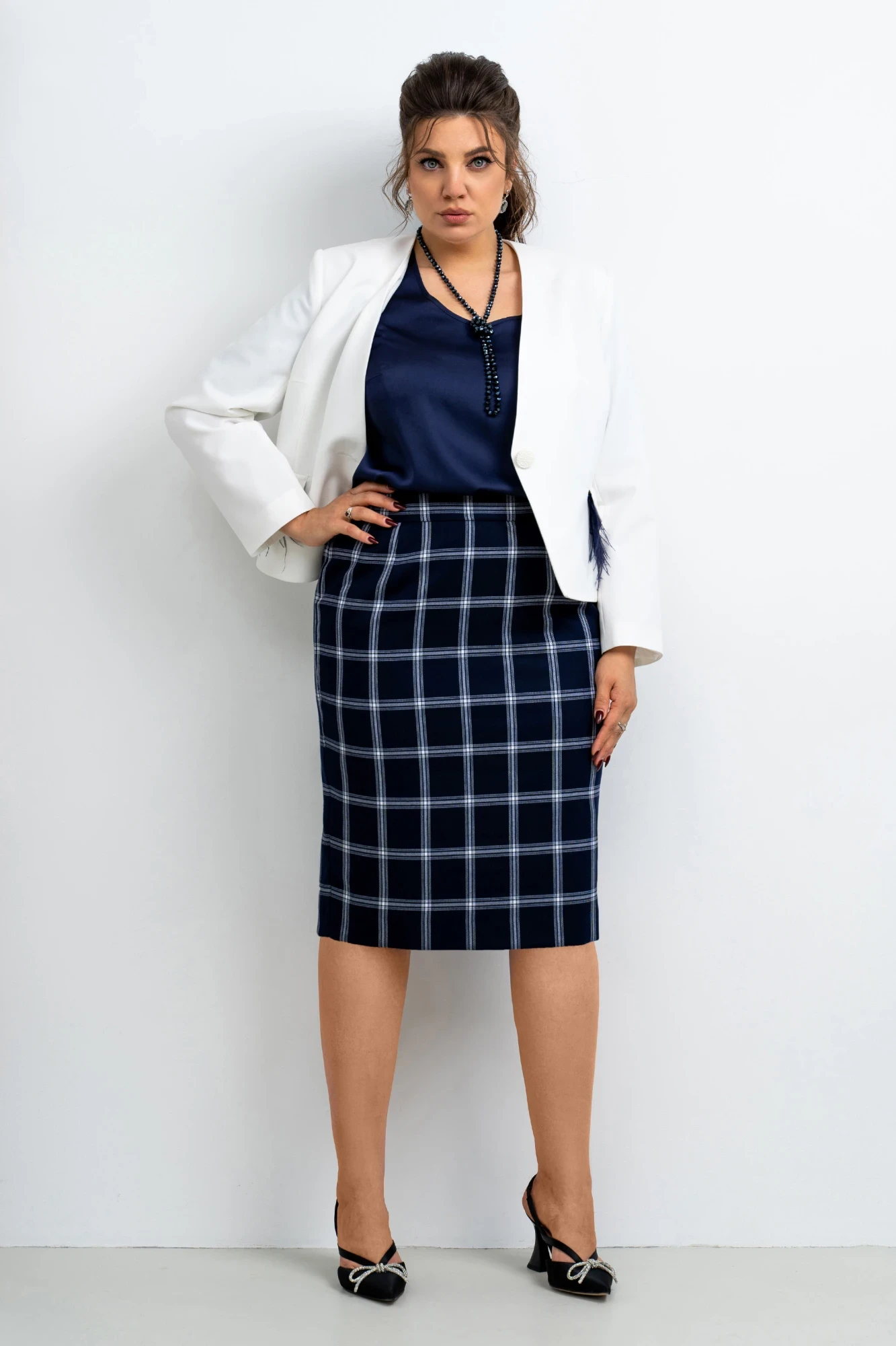 Юбочный костюм AIRA style 24-11 Молочно-синий тройка