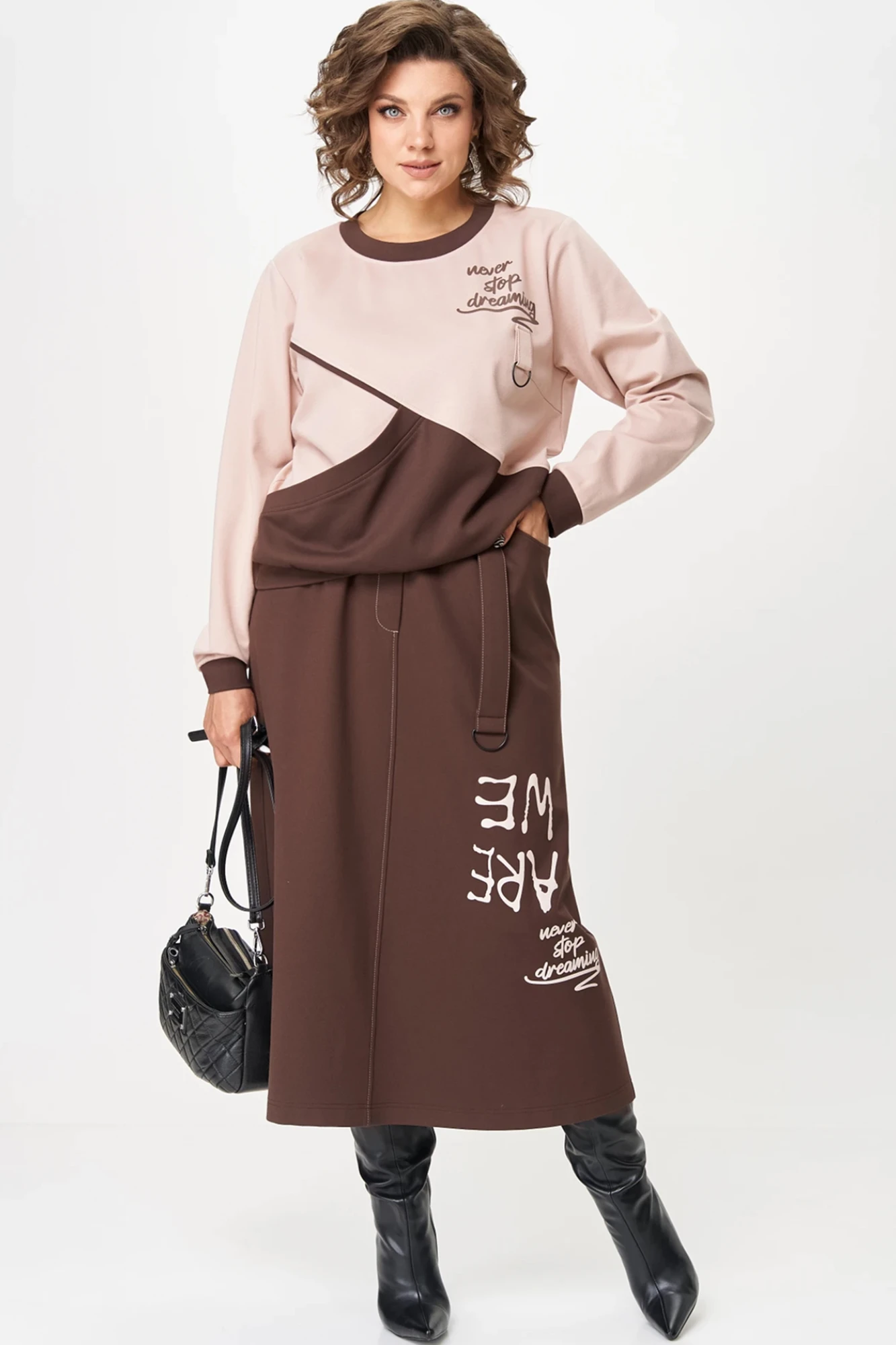 Юбочный костюм AIRA style 24129 пудра+коричневый двойка