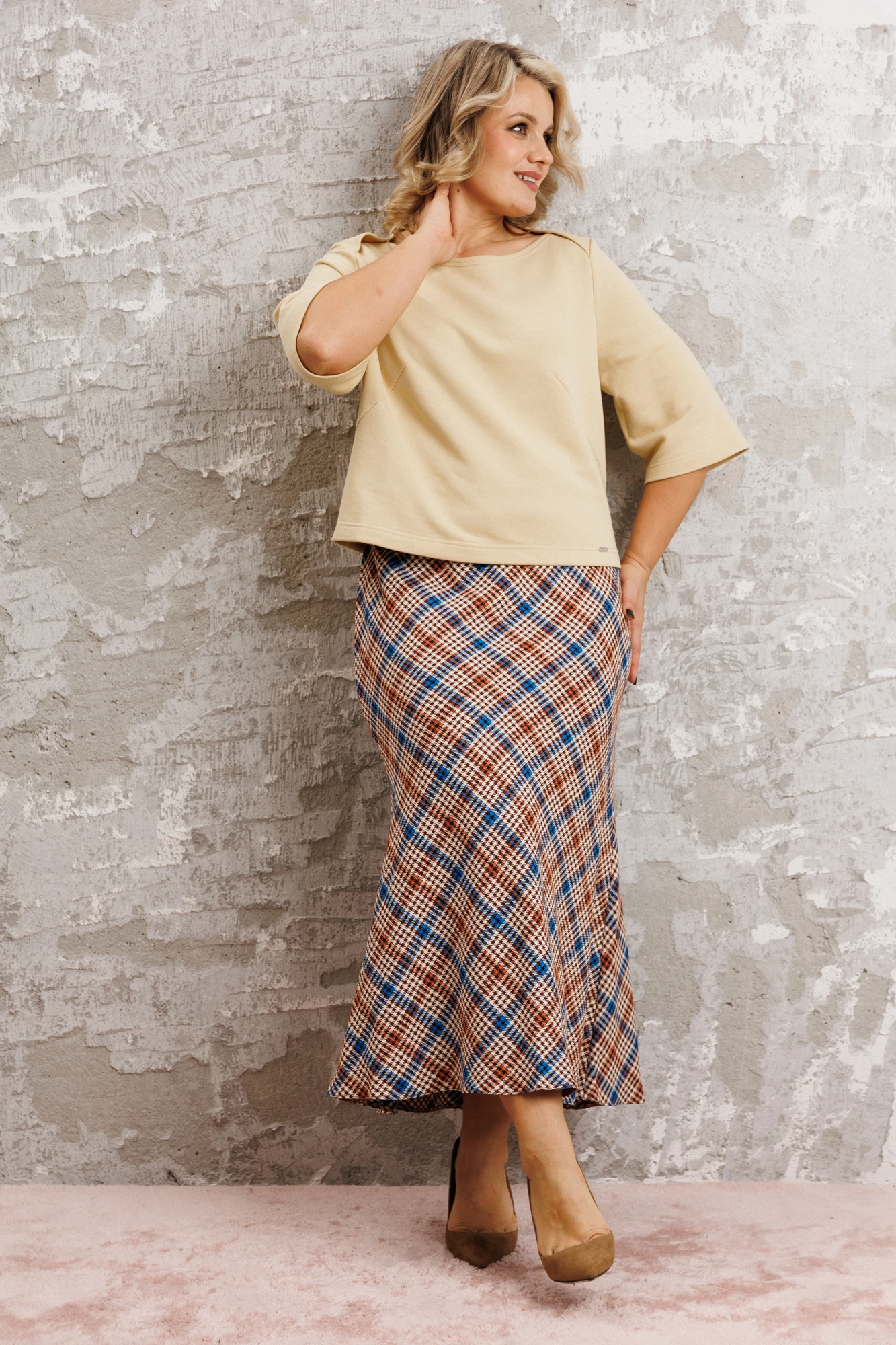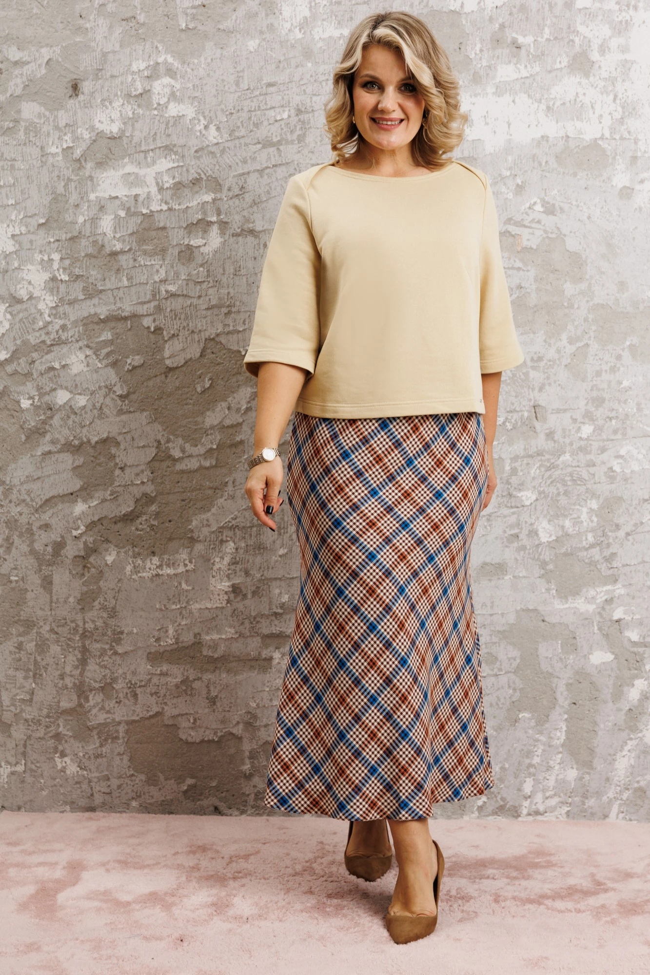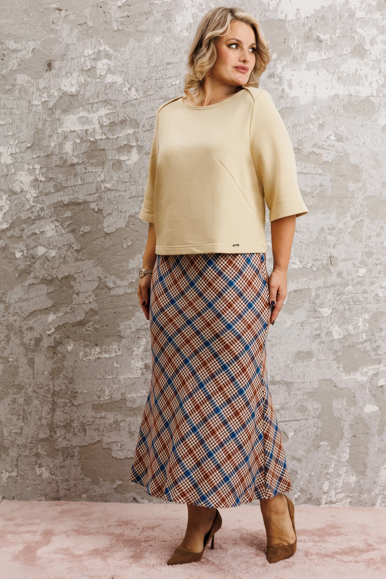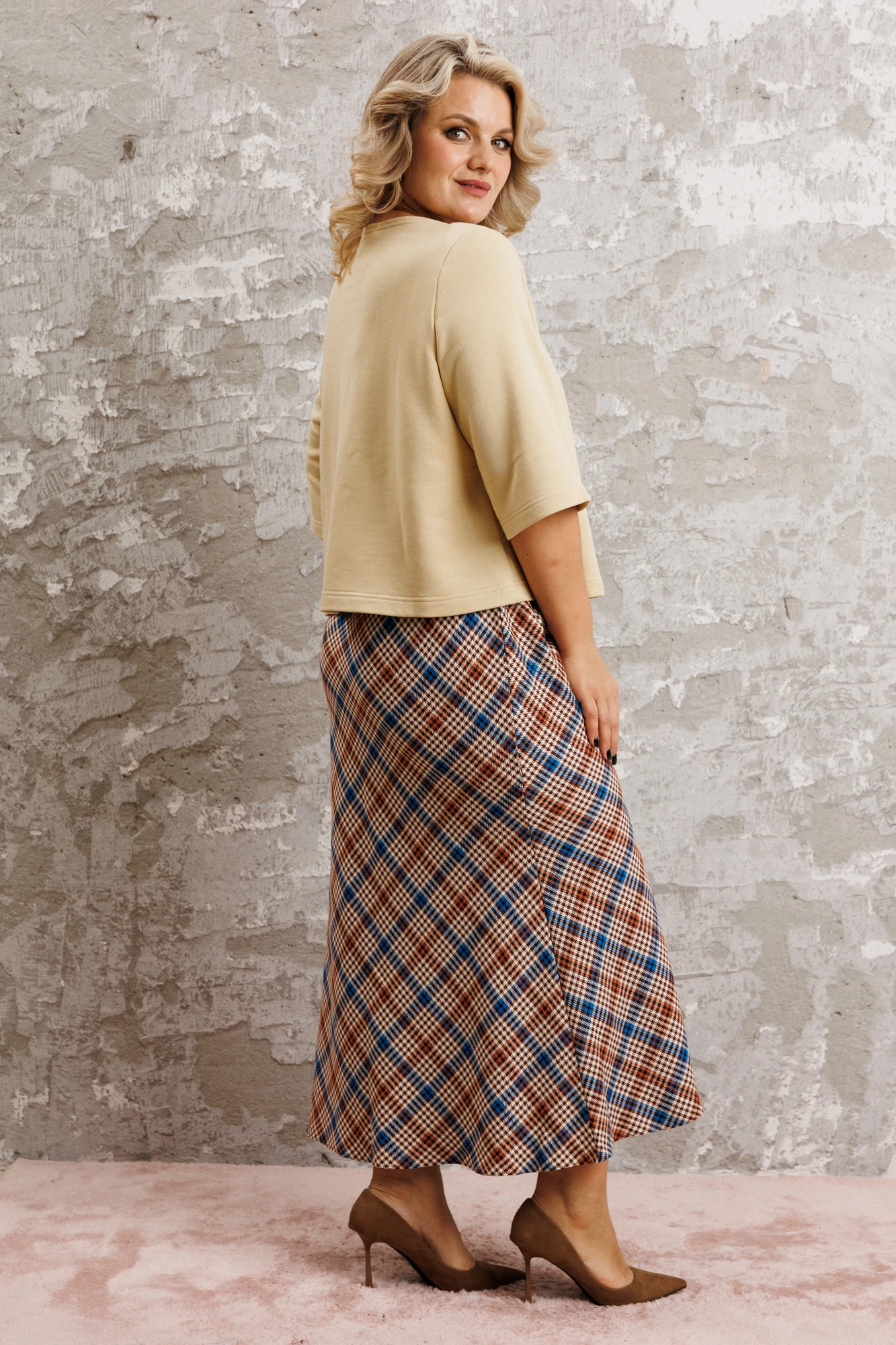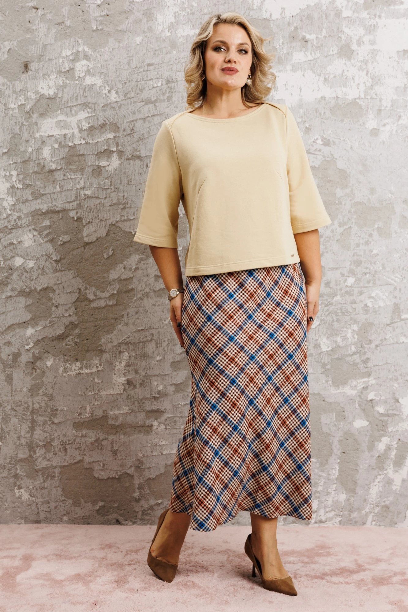 Юбочный костюм Anastasia 1174 сливочный/клетка двойка