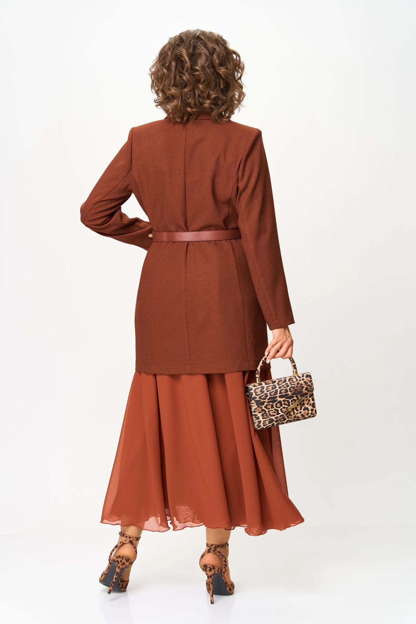 Женский деловой костюм с юбкой макси от Anastasia- для стильных и уверенных в себе женщин. Изготовленный из премиум ткани: смесь шерсти и полиэстра, что делает жакет легким и теплым. Этот комплект включает удлиненный пиджак и юбку из двойного шифона. Костюм двойка позволяет создавать как нарядные образы для вечерних выходов, так и строгие луки для офиса. Пиджак имеет удивительный комфортный крой, который скроет все недостатки фигуры. Пуговки служат элементом, придающим модели оригинальность. Пиджак полуприлегающего силуэта. Застежка двубортная на петли и пуговицы. Воротник пиджачного типа. Приталивание создается за счет бочка по полочке и спинке. Рукав вточной, двух шовный. Благородный терракотовый цвет делает это комплект универсальным. Великолепный фасон-юбка солнце длиной макси и резинкой на поясе обеспечивает идеальную посадку по фигуре, подчеркивая ваши достоинства и создавая элегантный силуэт. Сочетание оригинального модного дизайна и классического стиля делает этот осенний костюм настоящей находкой для вашего гардероба. Части комплекта вы можете легко носить как самостоятельные изделия. Благодаря своей длинне жакет можно носить, как платье. Юбку леко сочетать с различными верхами: топ, блузка, футболка, кружевной жакет, свитер или жакет из тексиля- все это позволит создавать различные образы на разные случаи. Благодаря своей длине пиджак можно носить как платье, а также дополнять различные комплдекты из вашего гардеоба. Почувствуйте себя уверенно и элегантно нашем комплекте! ВНИМАНИЕ: Пояс НЕ ХОДИТ в комплект.