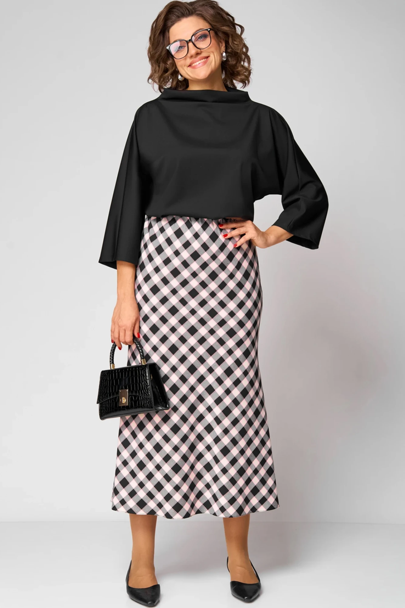 Юбочный костюм Anastasia 1284 черный/клетка двойка