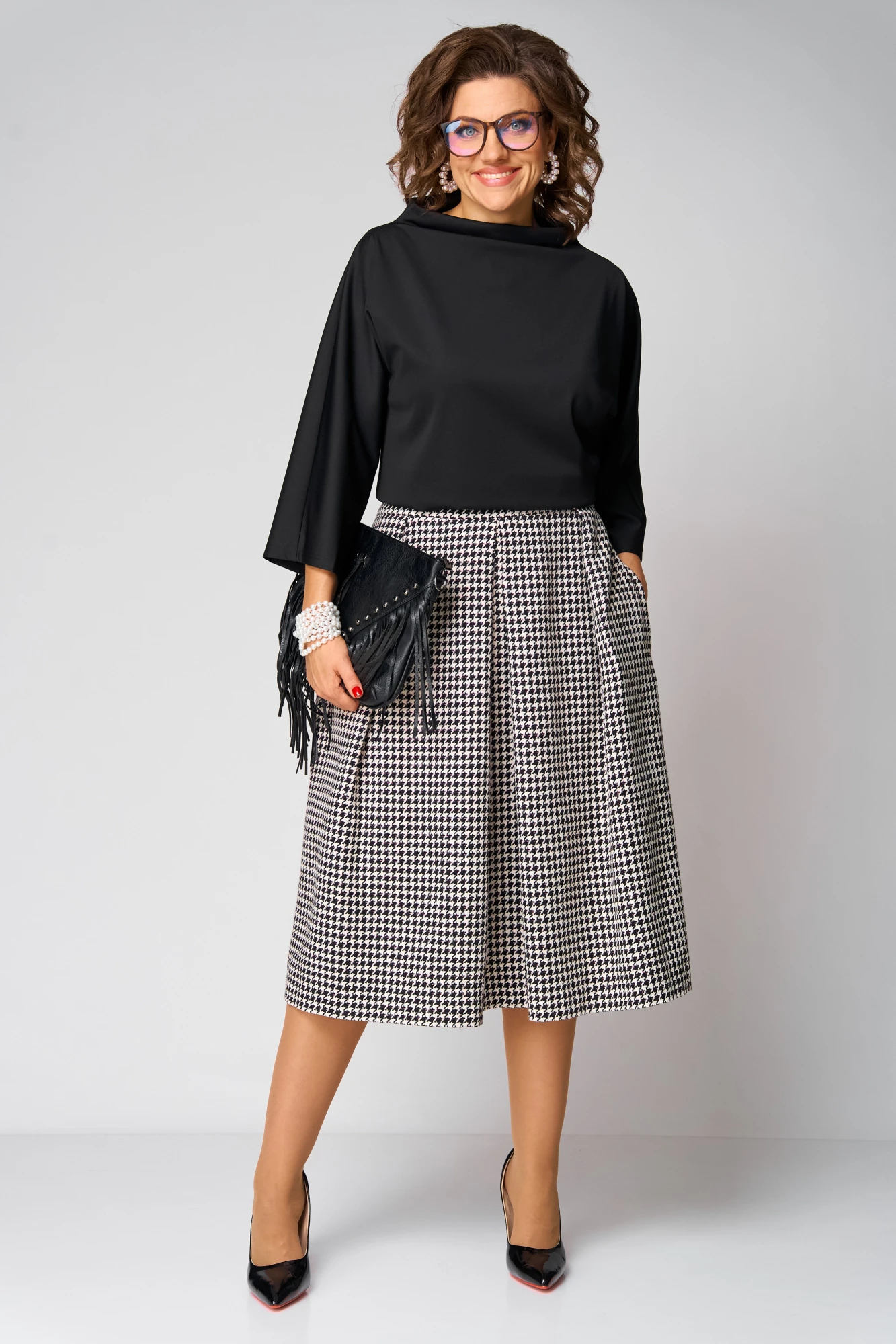 Юбочный костюм Anastasia 1285 черный/гусиная лапка двойка