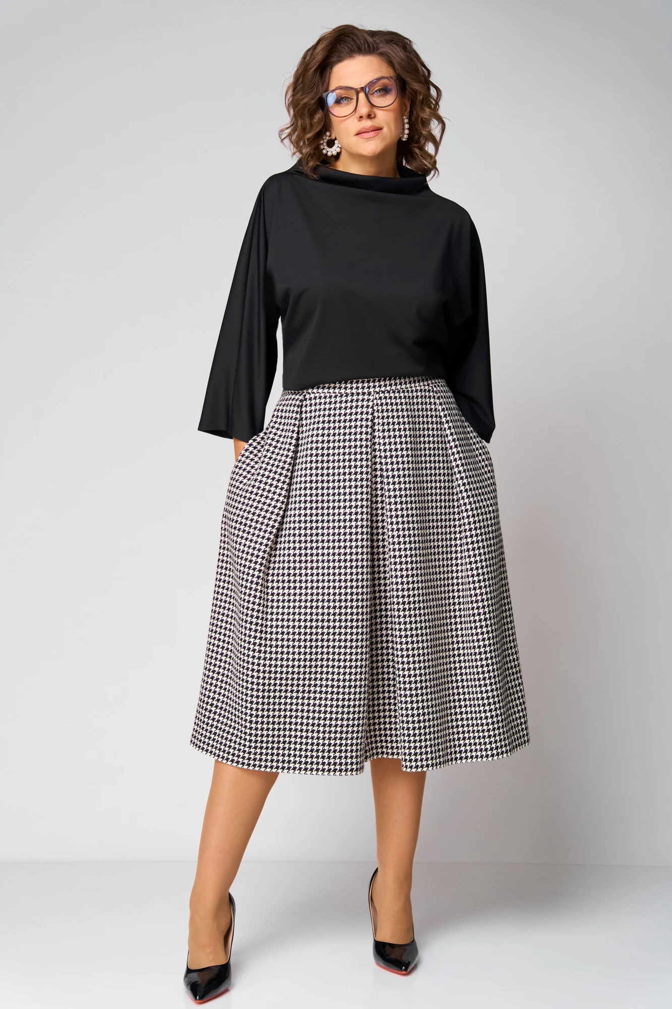 Юбочный костюм Anastasia 1285 черный/гусиная лапка двойка