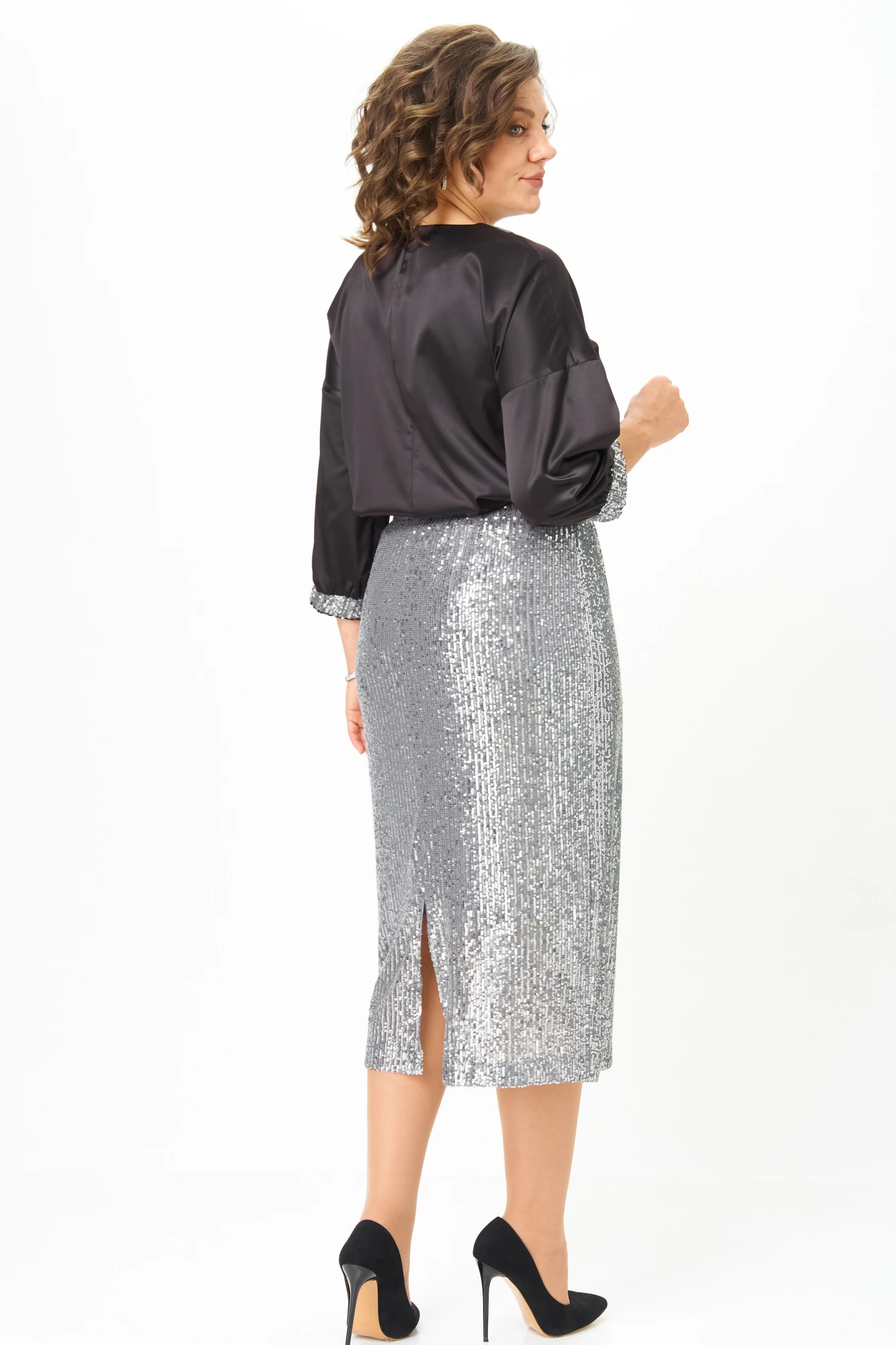 Юбочный костюм ANDINA CITY 9089-25 чёрный, серый двойка