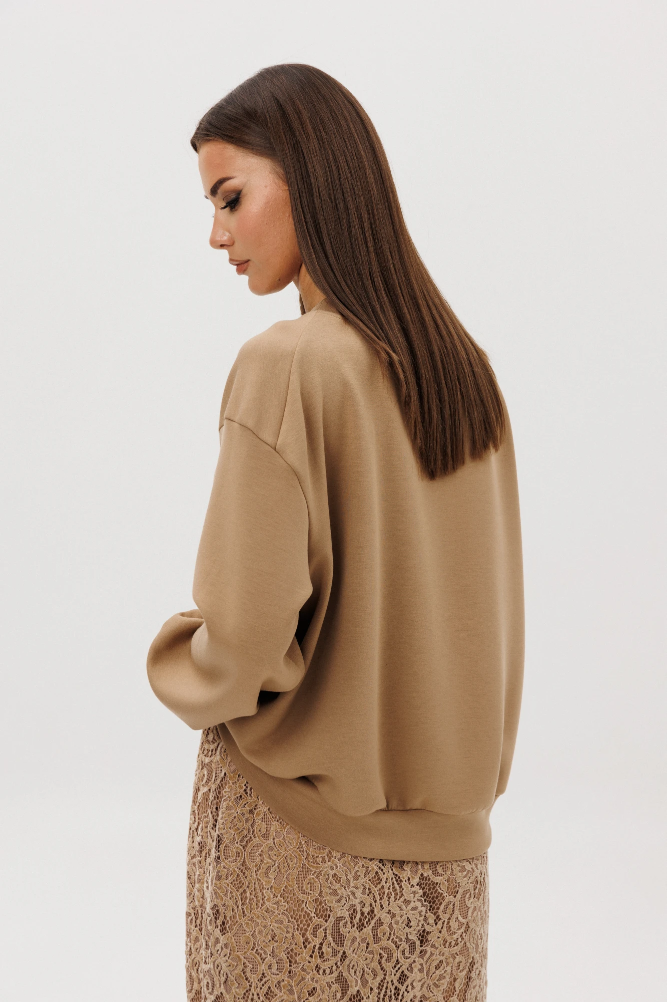 Стильный комплект, сочетающий уют и женственность. Мягкий свитшот из комфортного трикотажа украшен ручной расшивкой декоративными элементами в форме «клевера» — утончённая деталь, создающая акцент на естественной элегантности. Юбка выполнена из трендового шенилового гипюра с укороченной подкладкой, что придаёт образу лёгкость и современную многослойность.