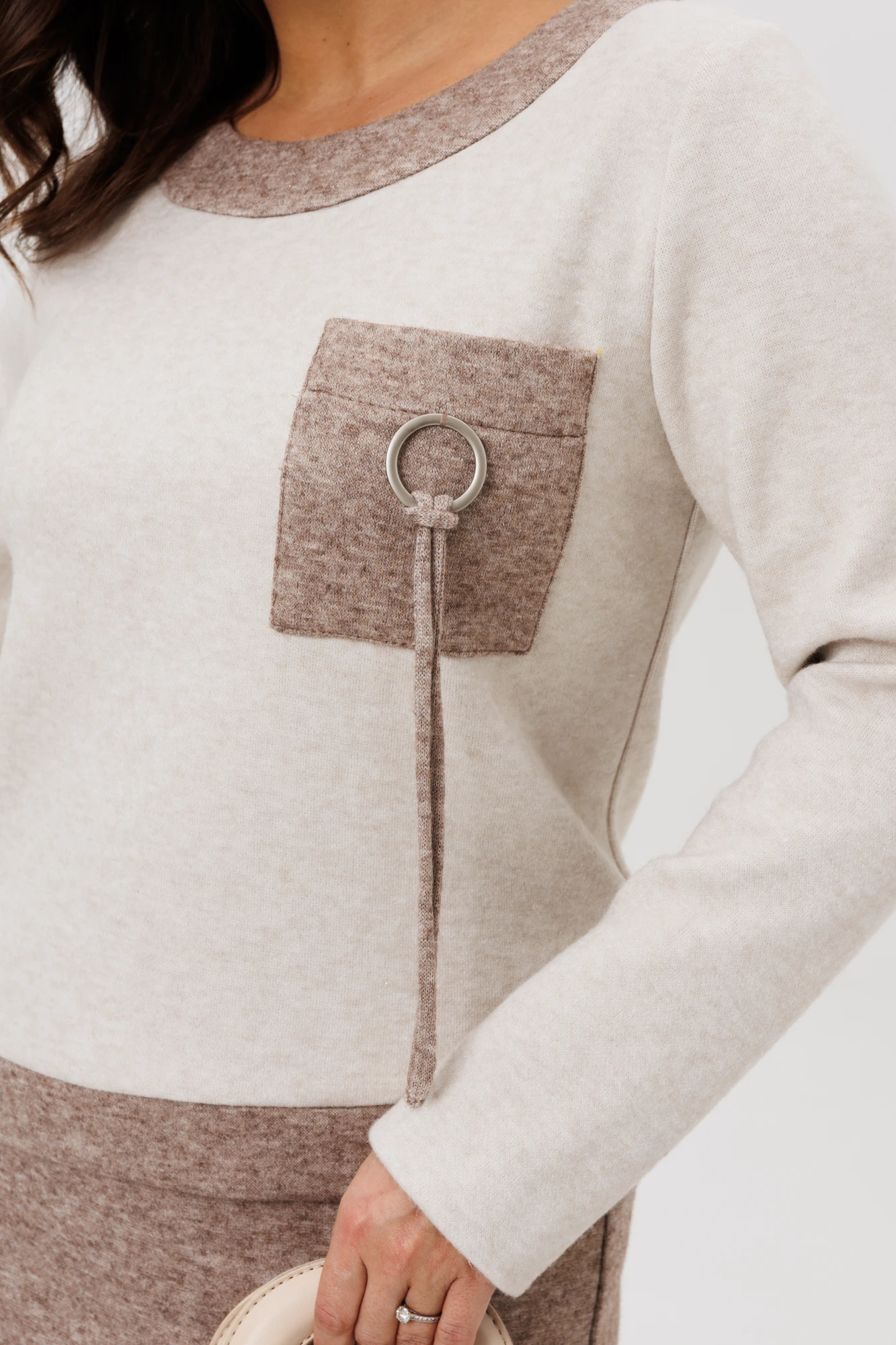 Декором данного комплекта служит накладной карман с дизайнерским элементом.