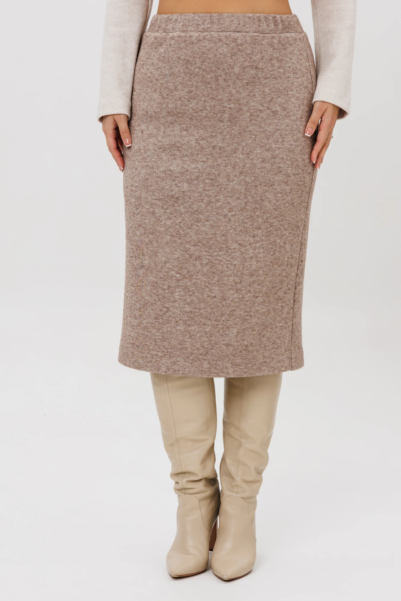 Осенний комплект джемпер и юбка , выполнен из мягкой и приятной к телу трикотажной ткани с добавлением натуральных нитей, которые обеспечивают комфорт и тепло в течение всего дня. Данный юбочный костюм идеально подходит как для офиса, так и для неформального повседневного использования.