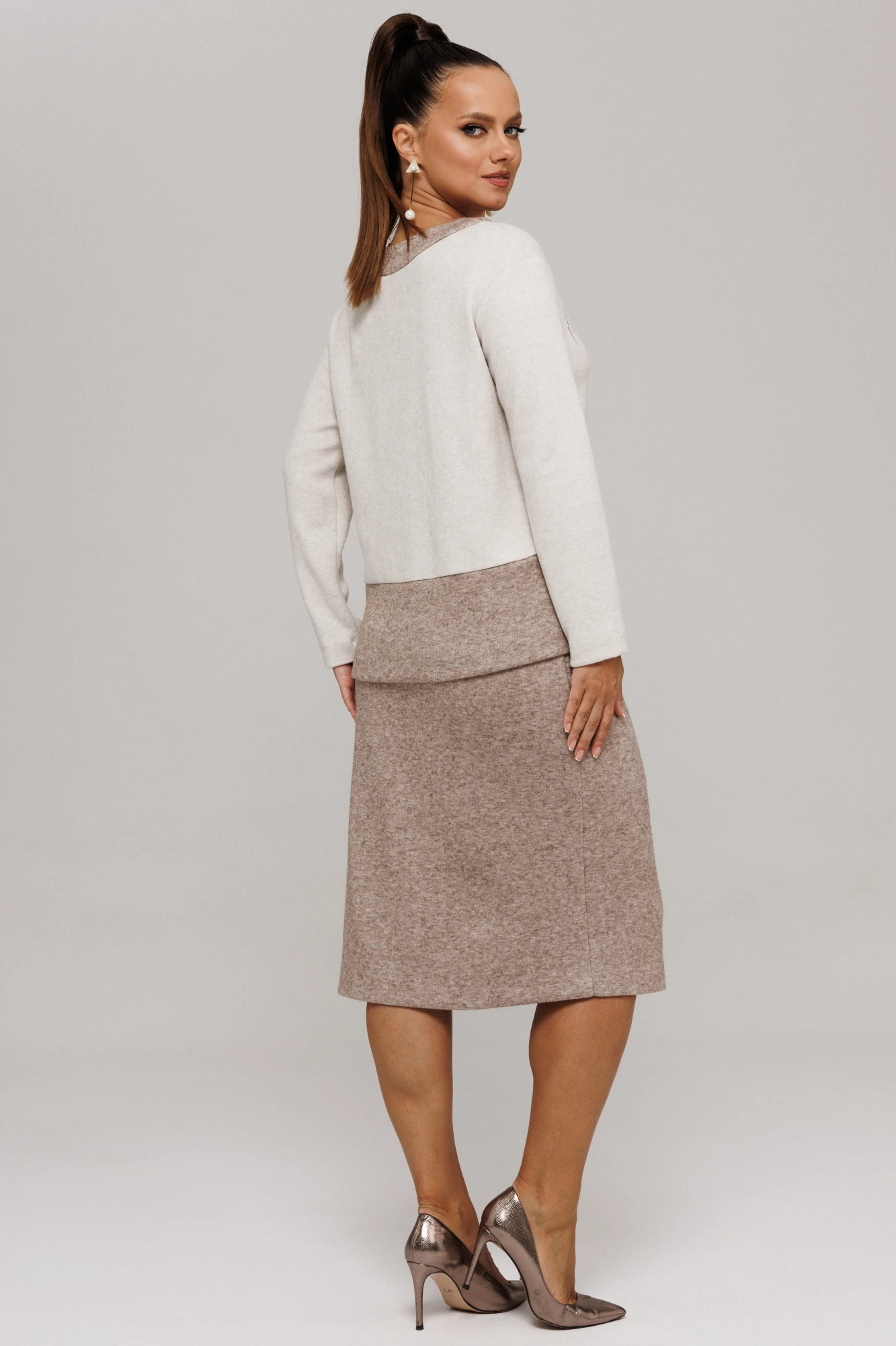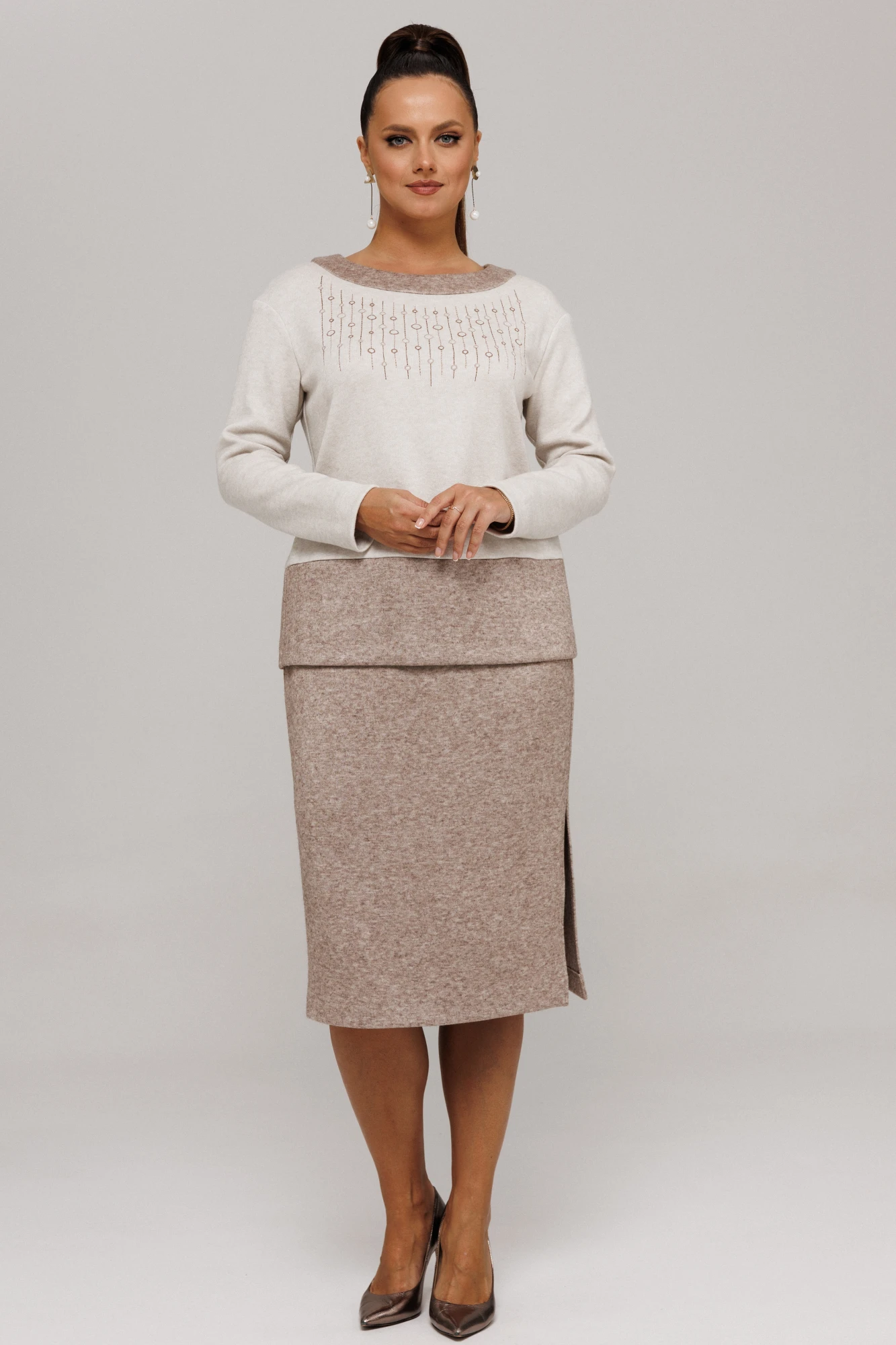 Юбочный костюм Галеан-стиль 994 беж_с_коричневым двойка