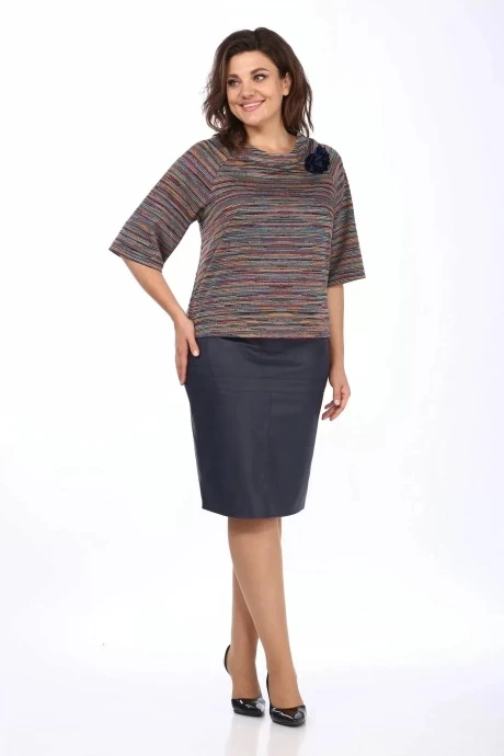 Юбочный костюм KLEVER 298/394 цвет юбки синий +блузка мультиколор двойка