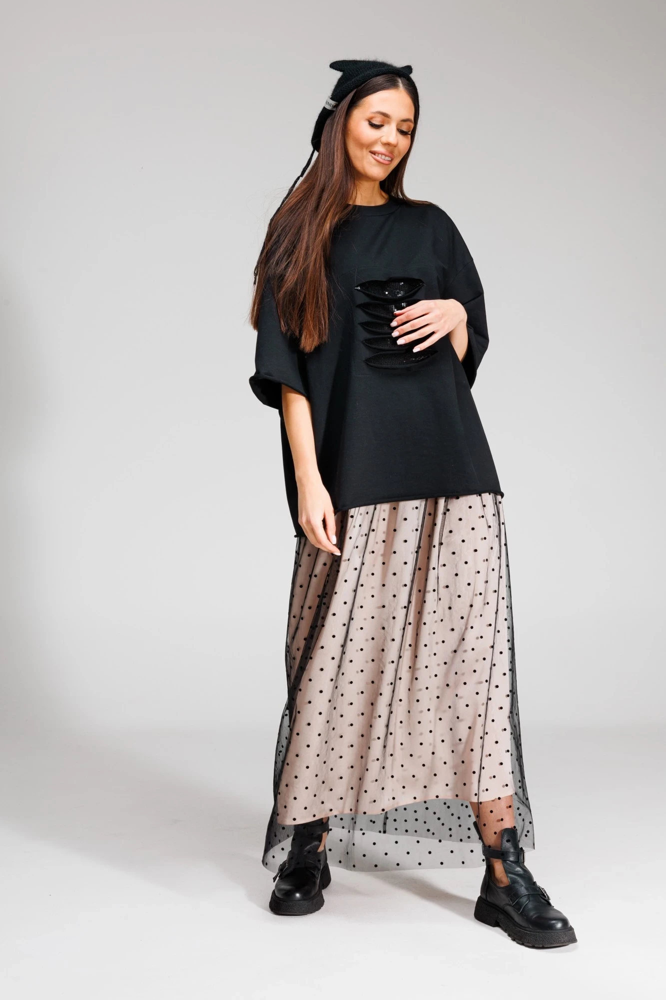 Стильный комплект, состоящий из майки оверсайз и роскошной юбки из фатина.