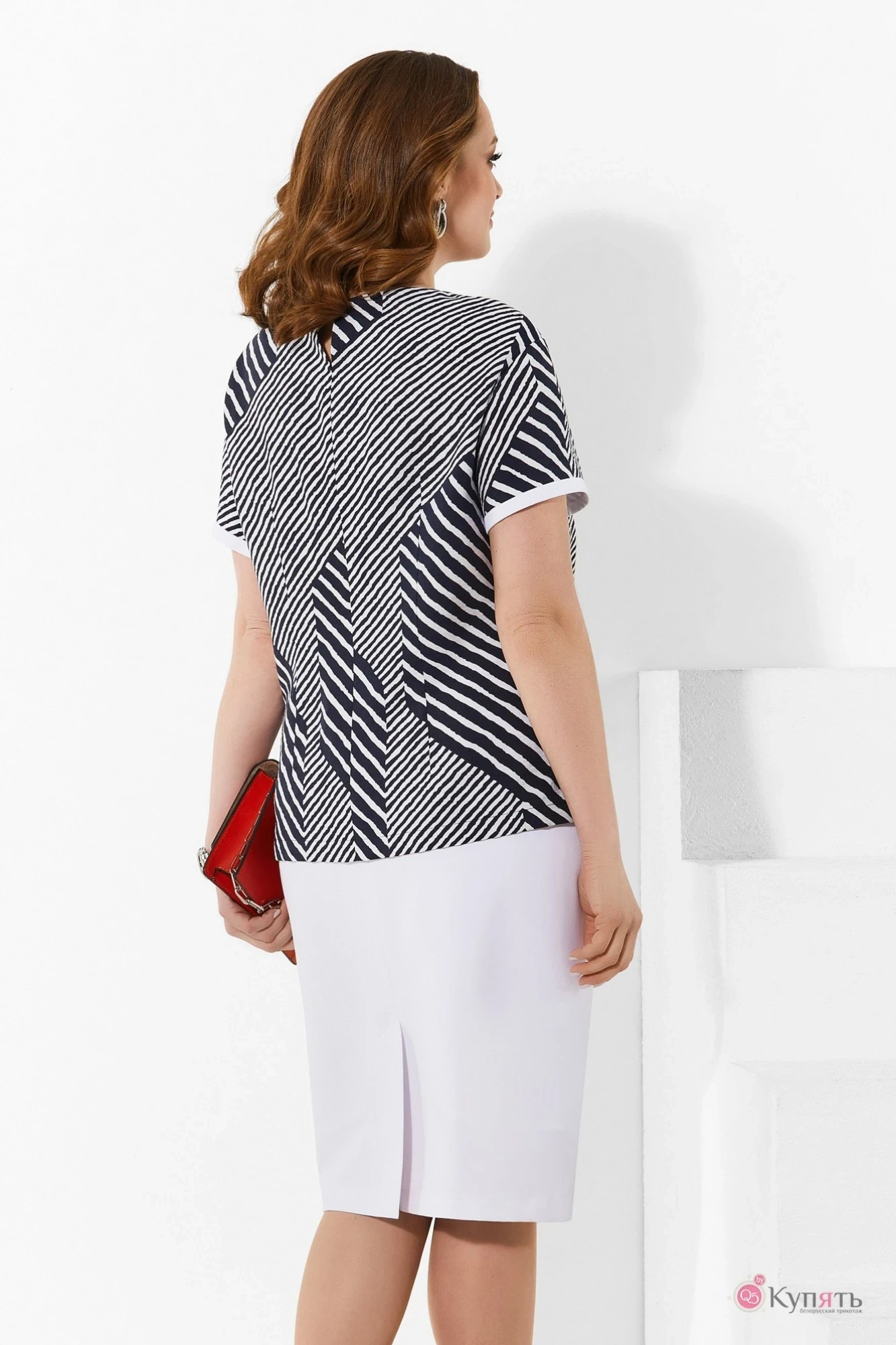 Современный дизайнерский комплект с авторским принтом горячий «хит» этого лета. Блузка прямого силуэта с округлым вырезом, вырез горловины и низ рукава обработаны узкой отрезной бейкой. . Перед оформлен нагрудными вытачками, спинка талиевыми по горловине обработан разрез. Линия плеча немного приспущена, рукав втачной. Юбка карандаш на подкладке с отрезным поясом, по бокам на резинке. Застежка на пуговицу и потайную молнию в среднем шве заднего полотнища юбки, по низу обработана шлица.