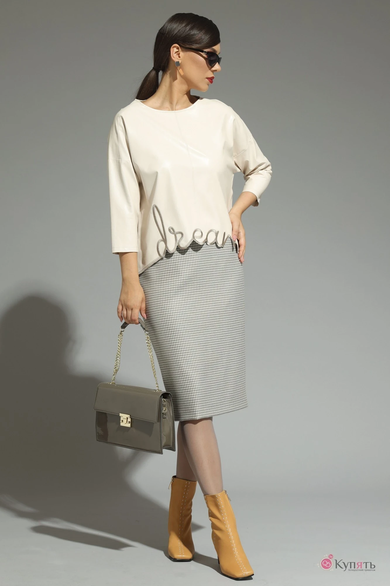 Юбочный костюм Магия Моды 1969 молочный+ серые тона