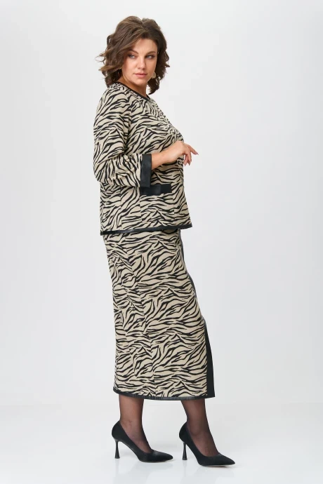 Юбочный костюм Michel Chic 1394 бежевый, принт двойка