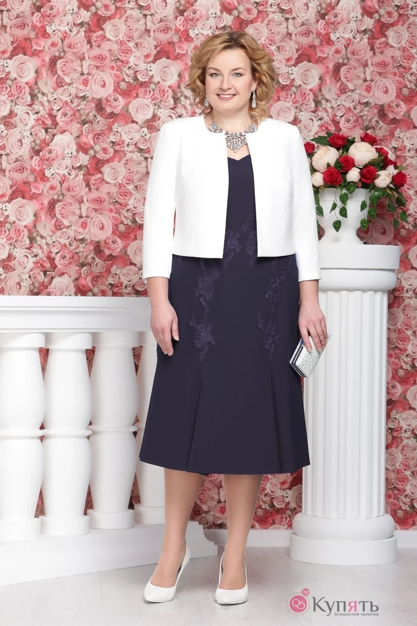 Юбочный костюм Нинель Шик 5497 тёмно-синий