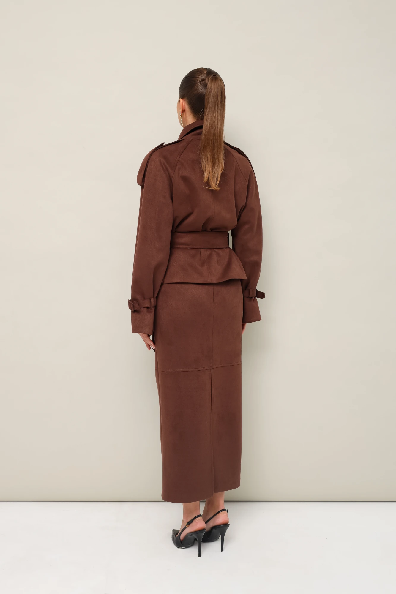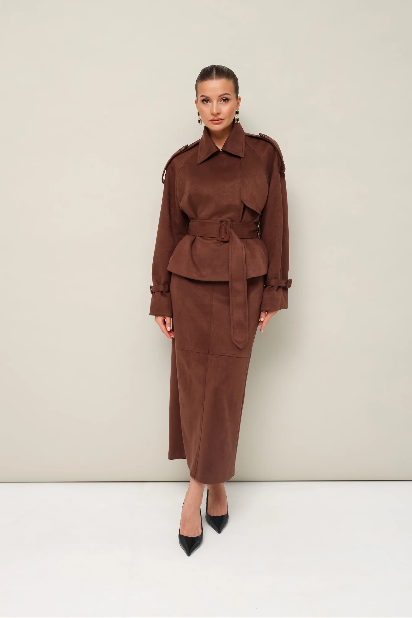 "Стильный 2-предметный комплект, состоящий из жакета и юбки, выполненный из экозамши.