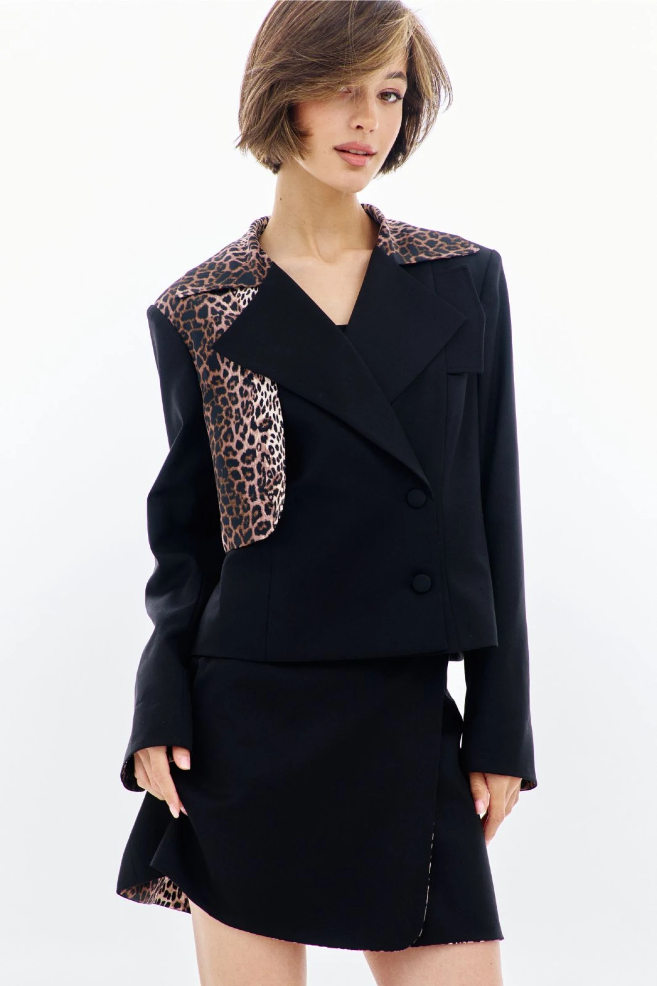 -отлетная кокетка, воротник и обтачка рукава с леопардовым принтом