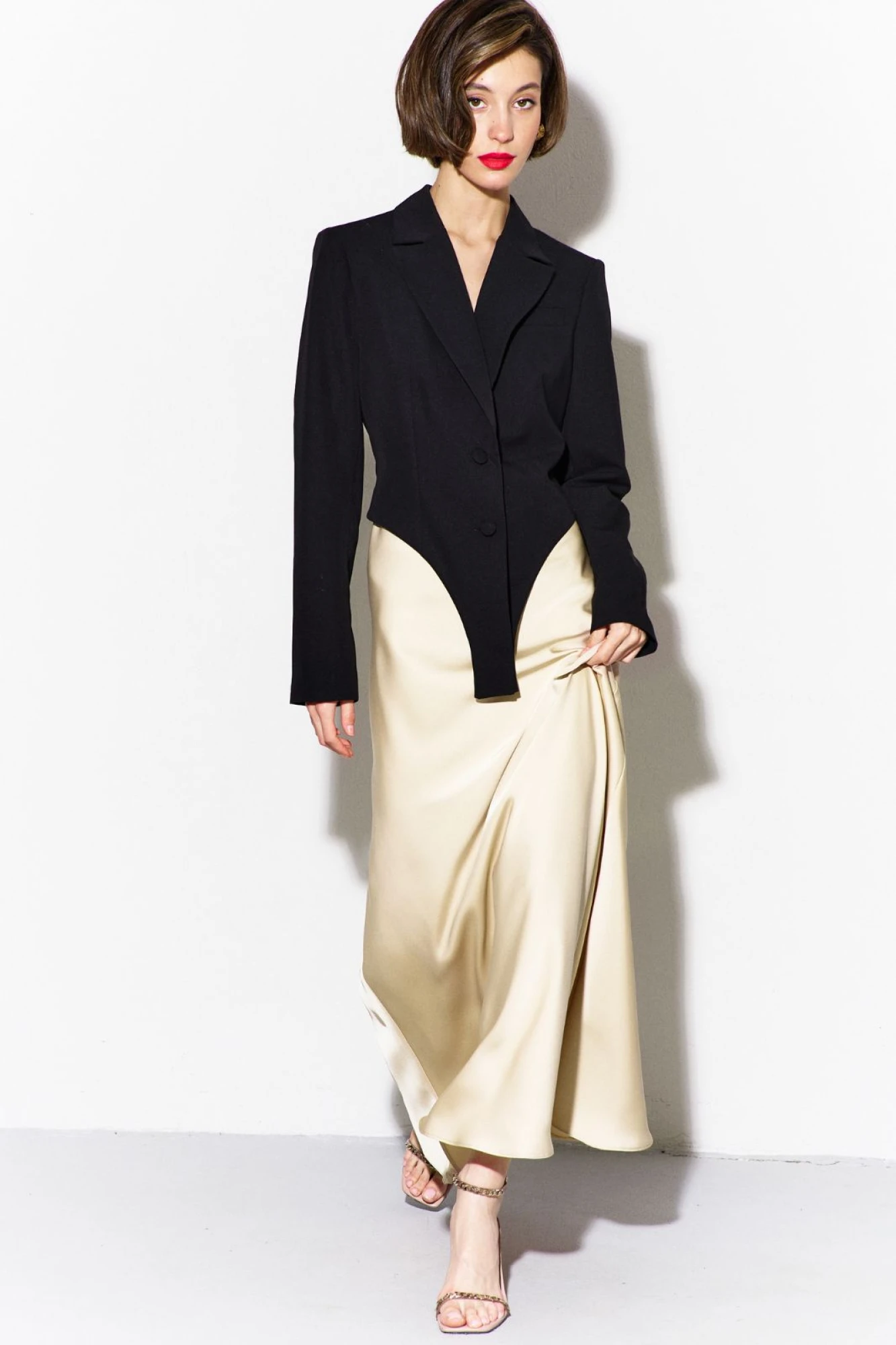 -жакет полуприлегающего силуэта, с фигурной линией низа, имитирующей боди