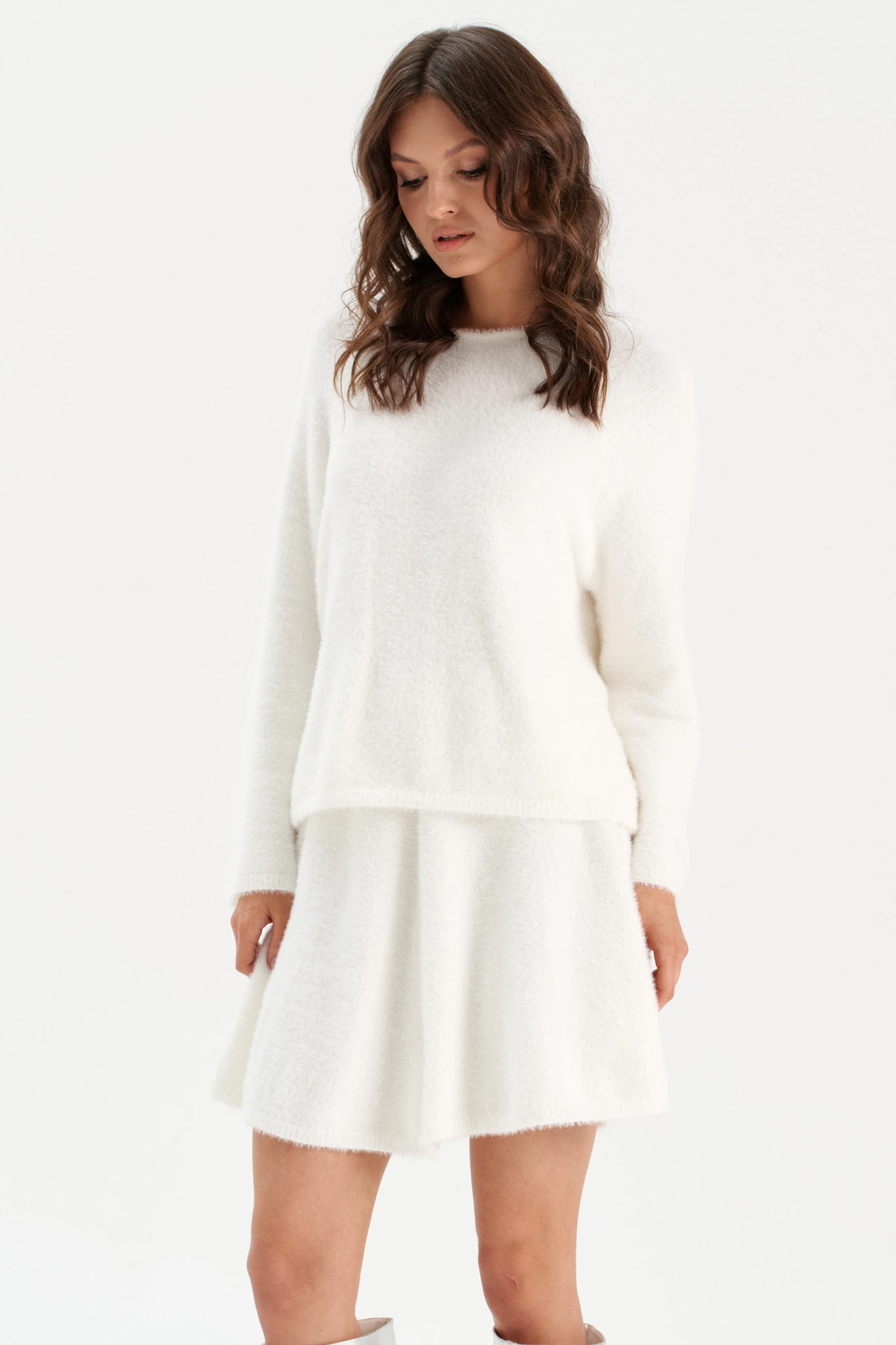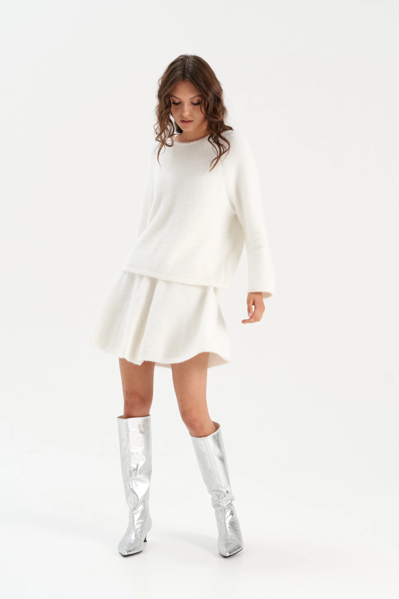 Элегантный и уютный юбочный костюм из мягкой пряжи. Представляем вашему вниманию наш новый костюм, который станет идеальным дополнением вашего гардероба. Этот костюм, выполненный из высококачественной мягкой пряжи, не только согреет вас в прохладные дни, но и добавит нотку изысканности в ваш образ.