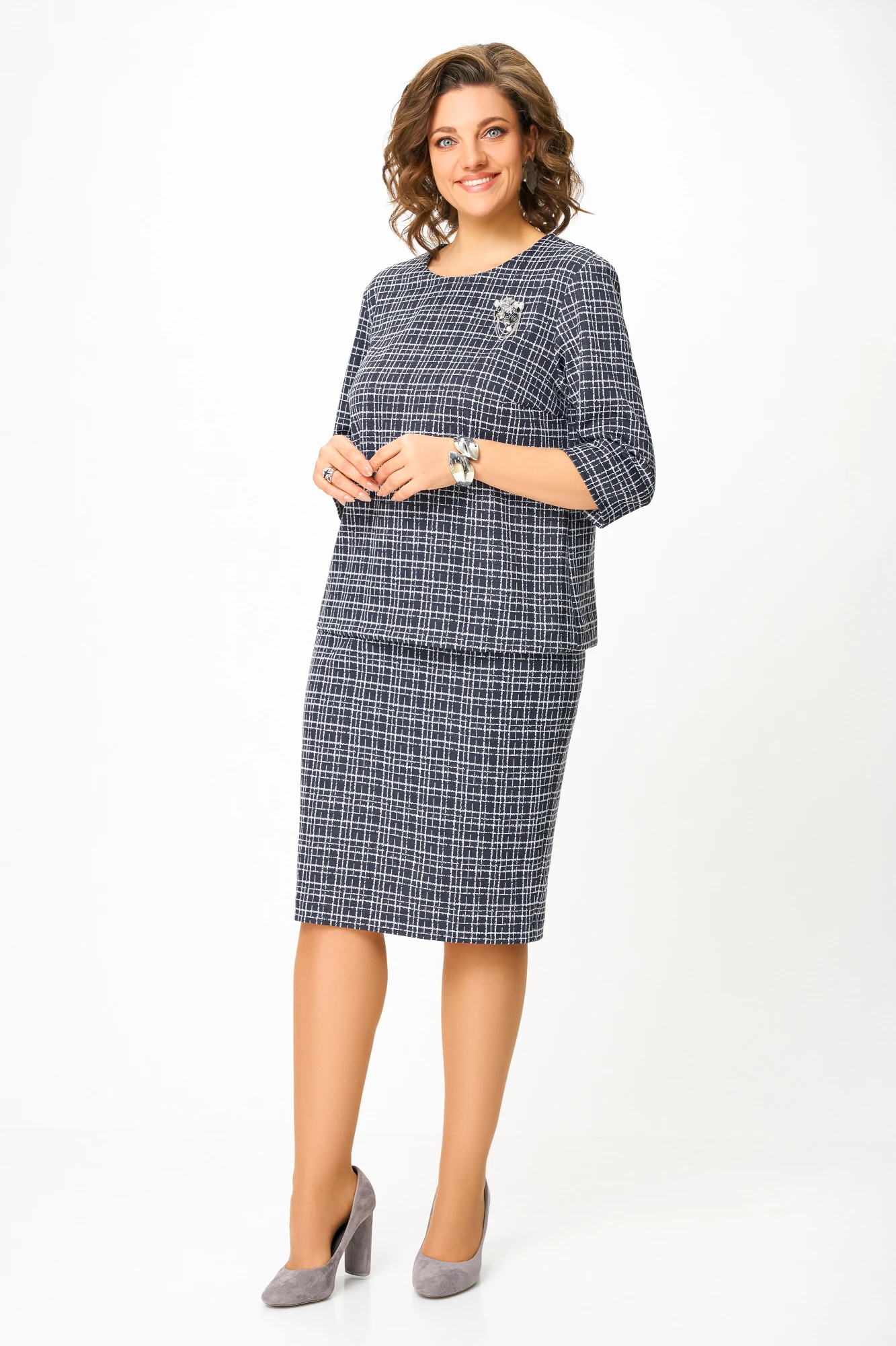 Юбочный костюм Swallow 877 Графит, молочный принт клетка двойка
