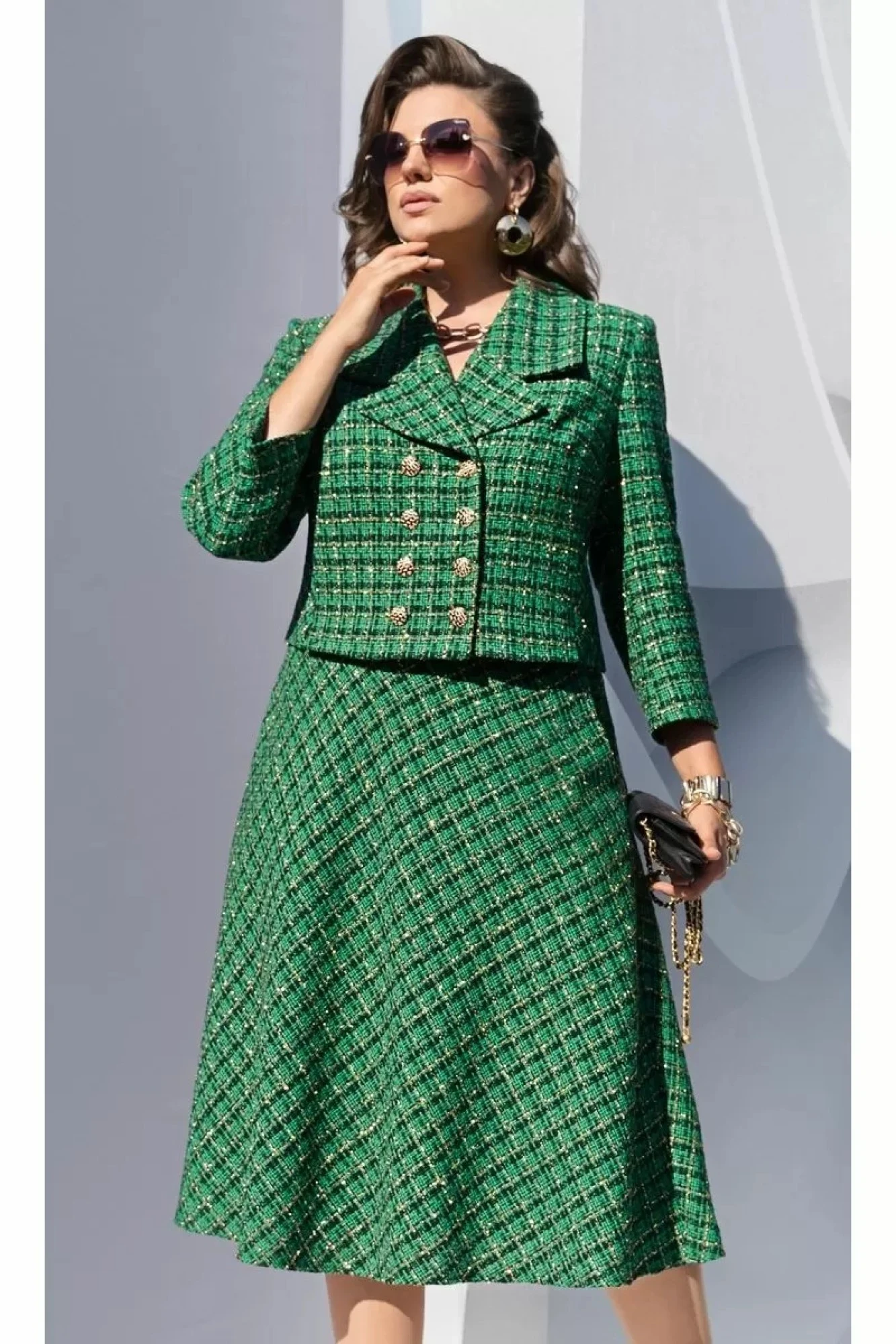 Юбочный костюм Vittoria Queen 20363 двойка дизайн клетка зеленый