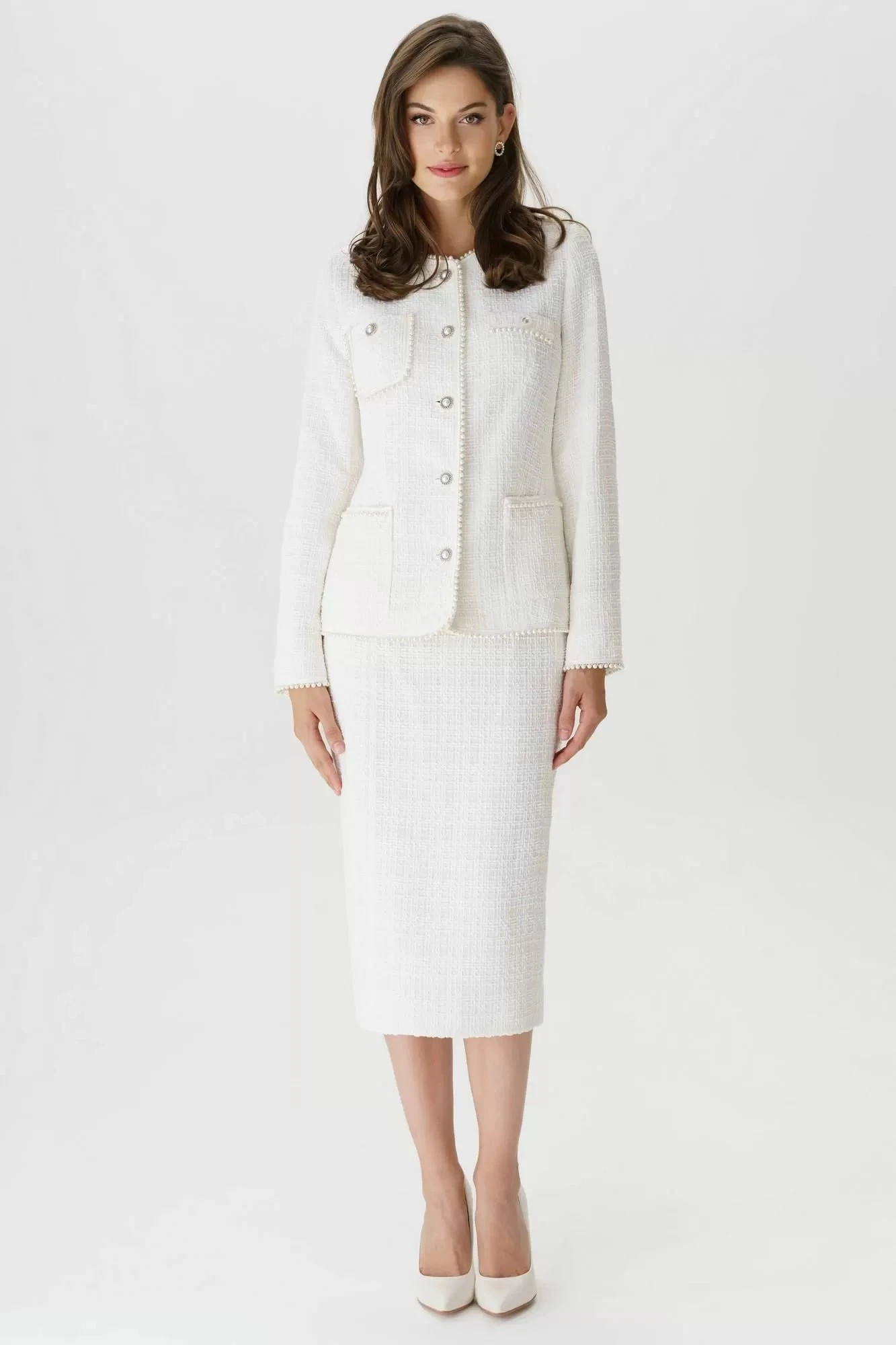 Этот изысканный костюм с жемчужной отделкой в стиле Шанель сделает даже самую строгую деловую леди более нежной и женственной. Этот костюм для истинных любителей классики, и тех кто в любой ситуации хочет выглядеть изысканно и элегантно.