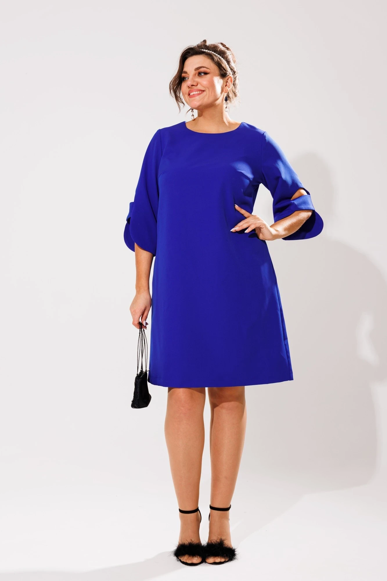 Это изысканное и нарядное платье воплощает в себе элегантность и стиль, создавая неповторимый образ для любого случая. Рукав с фигурным низом и кокетливой перемычкой придает образу легкость и изысканность. Силуэт трапеция обеспечивая комфорт и свободу движений.