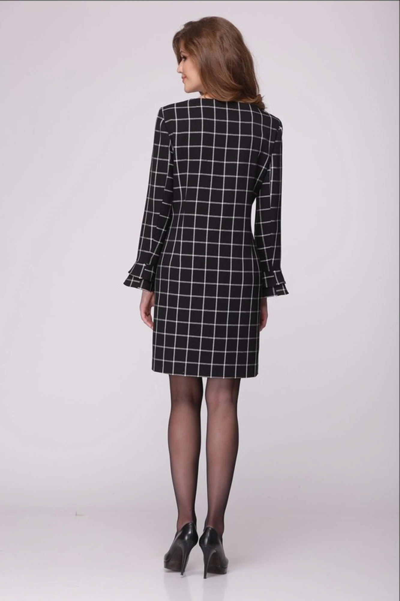 Прямое платье-рубашка выше колен. Неотрезное по линии талии - украшено декоративными листочками, горловина округлая с декоративной брошкой из жемчужных бусин, рукав декорирован валаном по нижнему краю детали. Материал - вискоза. Ткань в меру плотная, приятная к телу, идеально подходит на осень. Уход - бережная стирка при 30 градусах.