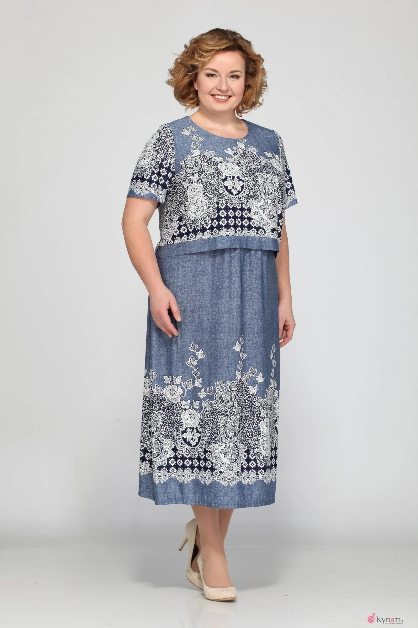 Женское платье свободного силуэта, отрезное под грудью, лиф выполнен в виде отлетной детали, горловина круглая. Рукава втачные. Платье выполнено из комфортного трикотажного полотна с дизайном.