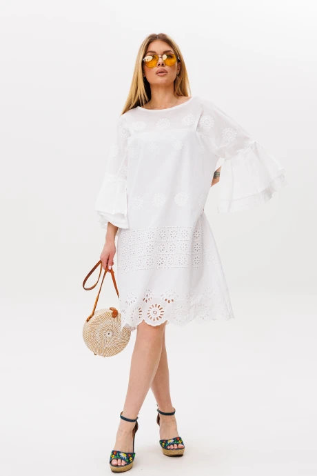 Платье свободного силуэта (стиль оверсайз), на кокетке по переду и спинке. Рукав цельнокроенный. По низу рукава притачные воланы.Платье на подкладке.