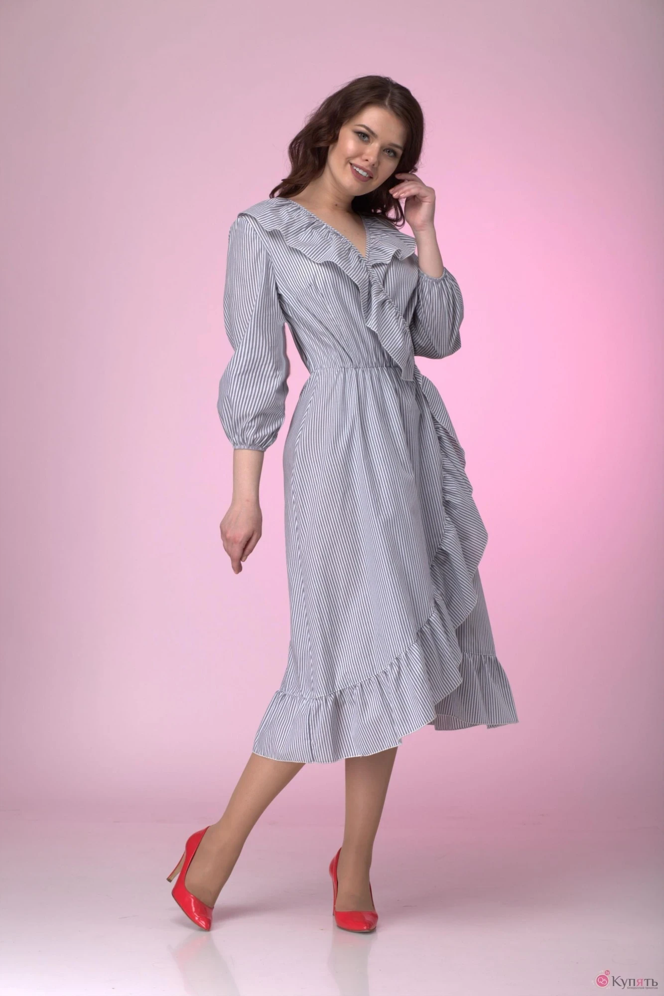 Категория: платье Платье полуприлегающего силуэта, отрезное по линии талии на резинке. V образный вырез. Платье « на запах».Втачной Рукав ¾ на резинке.