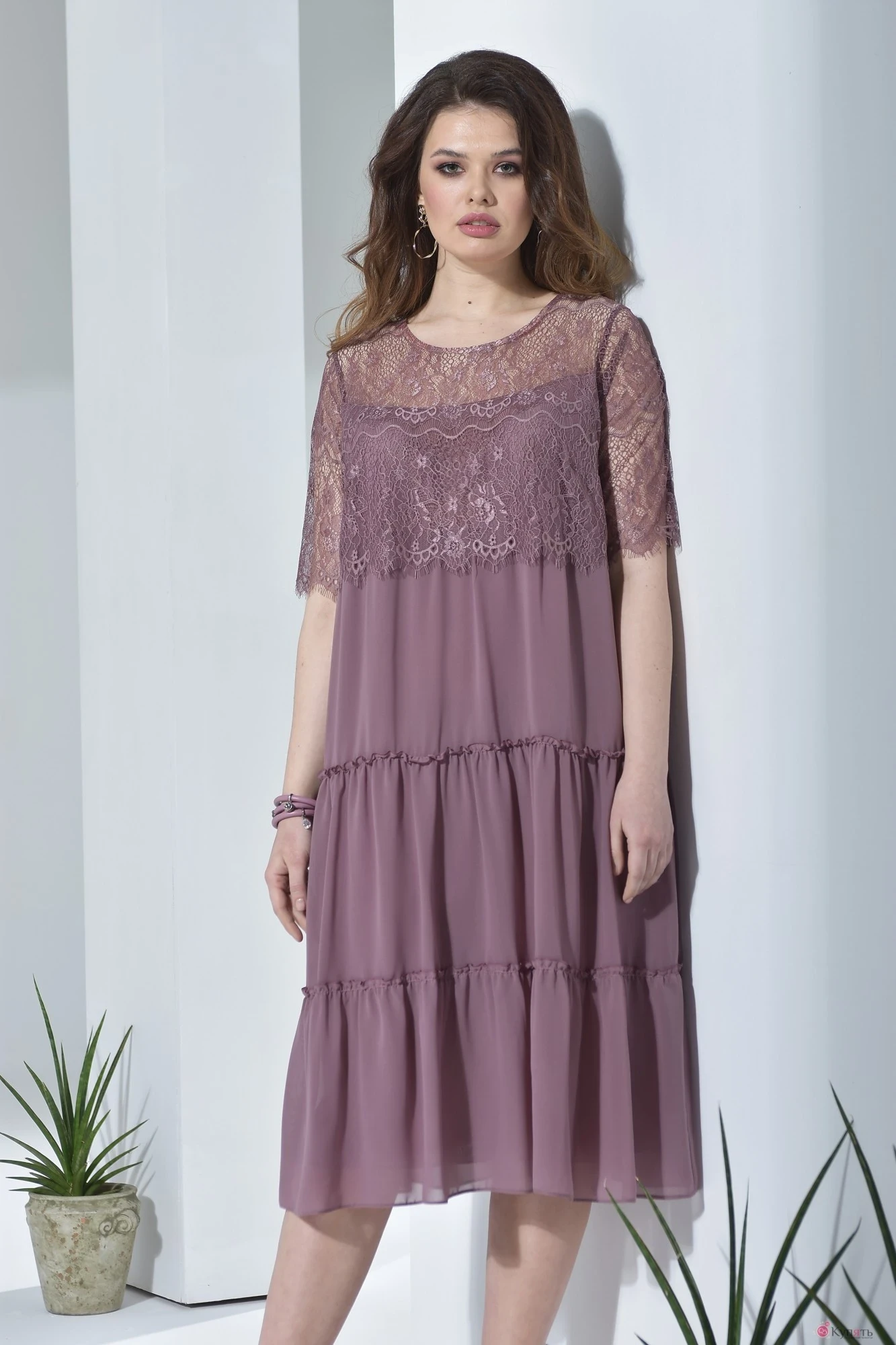 Платье А-силуэта. Лиф платья из эластичного "французского" кружева. Струящаяся юбка ярусами из шифона обработана улиткой. Подкладка из второго слоя шифона. Застежка капелька на горловине по спинке.