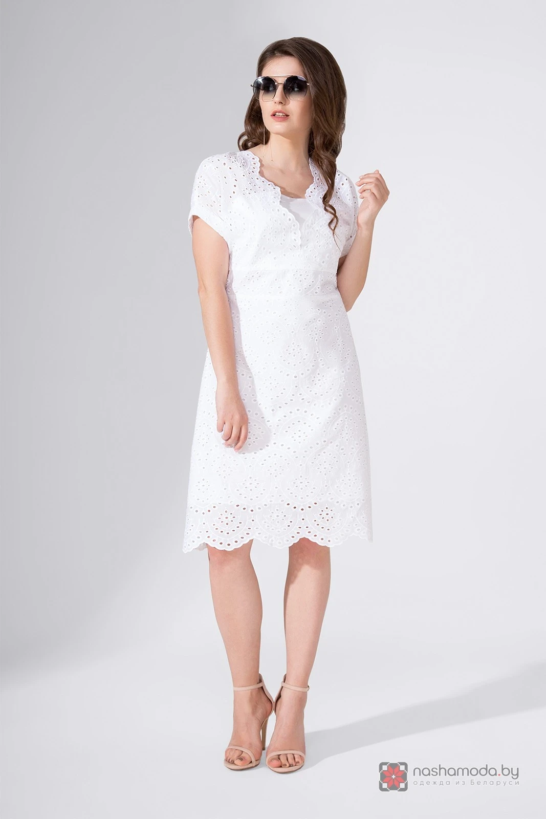 Нарядное платье полуприлегающего силуэта из ткани х/б шитье. Платье на х/б подкладке. В среднем шве спинки молния, рукав цельнокроенный.