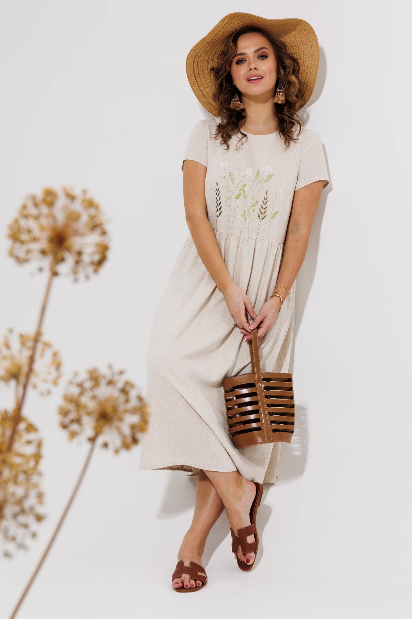 "Платье женское отрезное по линии талии, льняное.Перёд с нагрудными вытачками идущими с боковых швов.