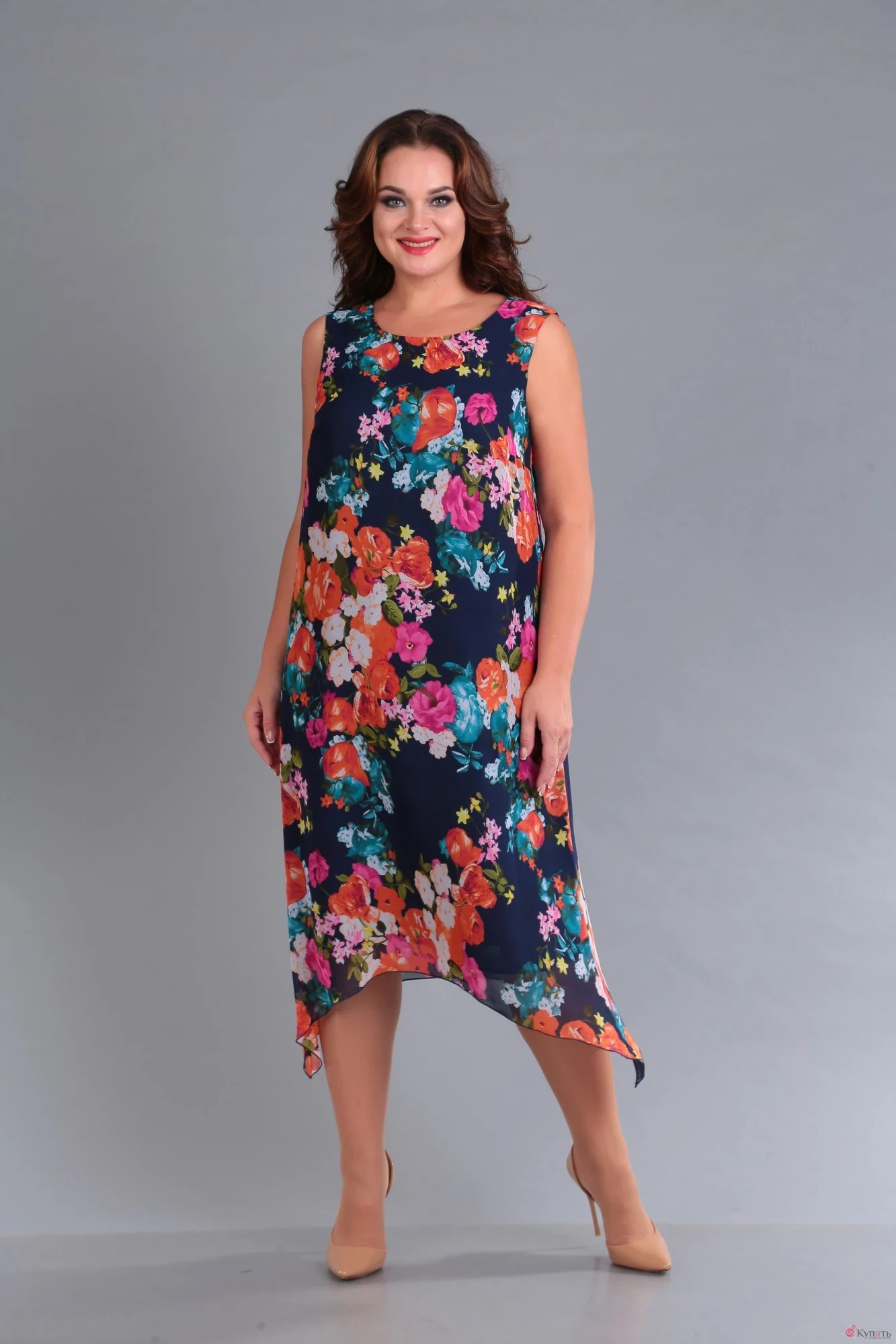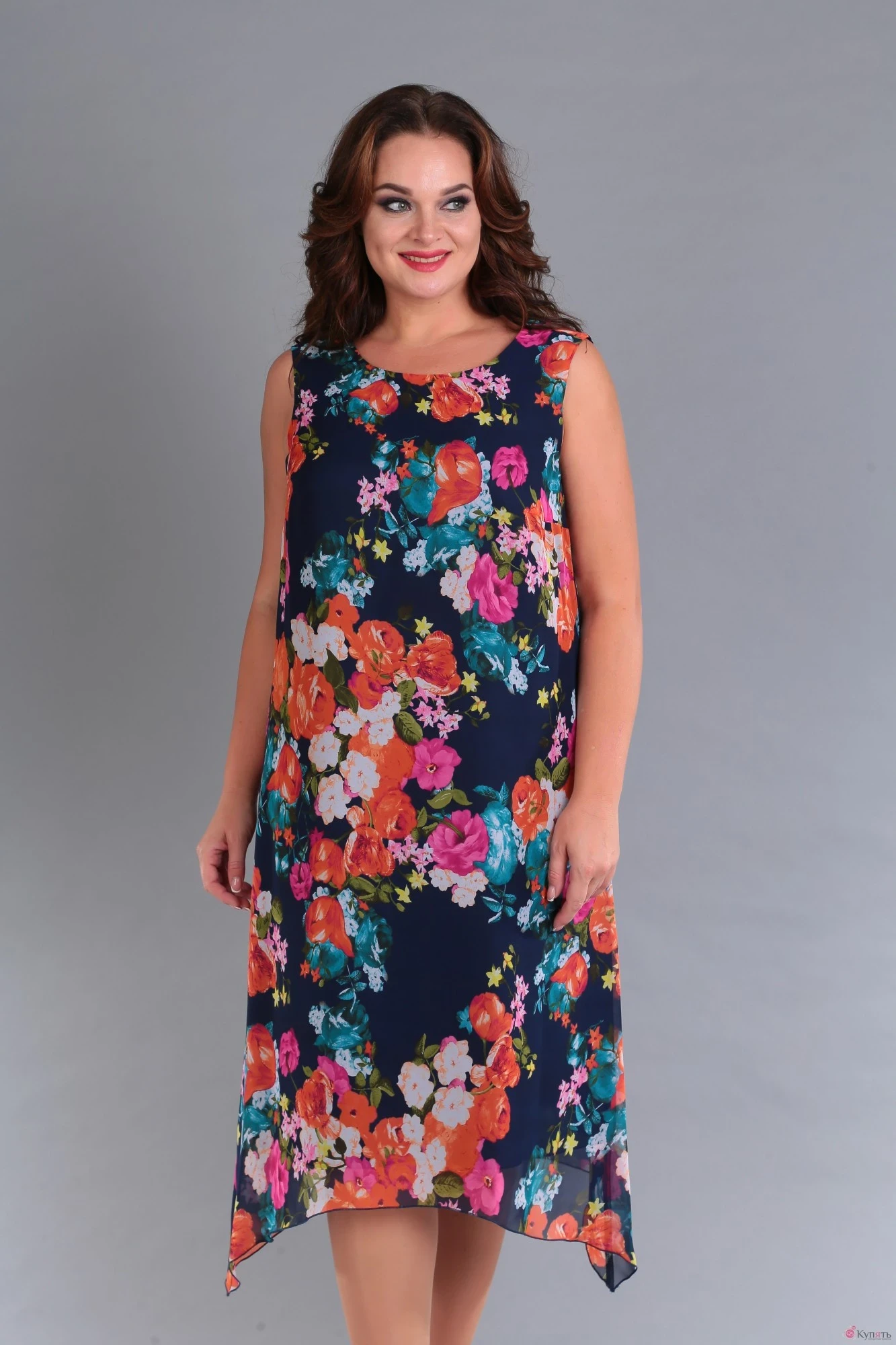 летнее нарядно-повседневное платье А-силуэта на шифоновой подкладке