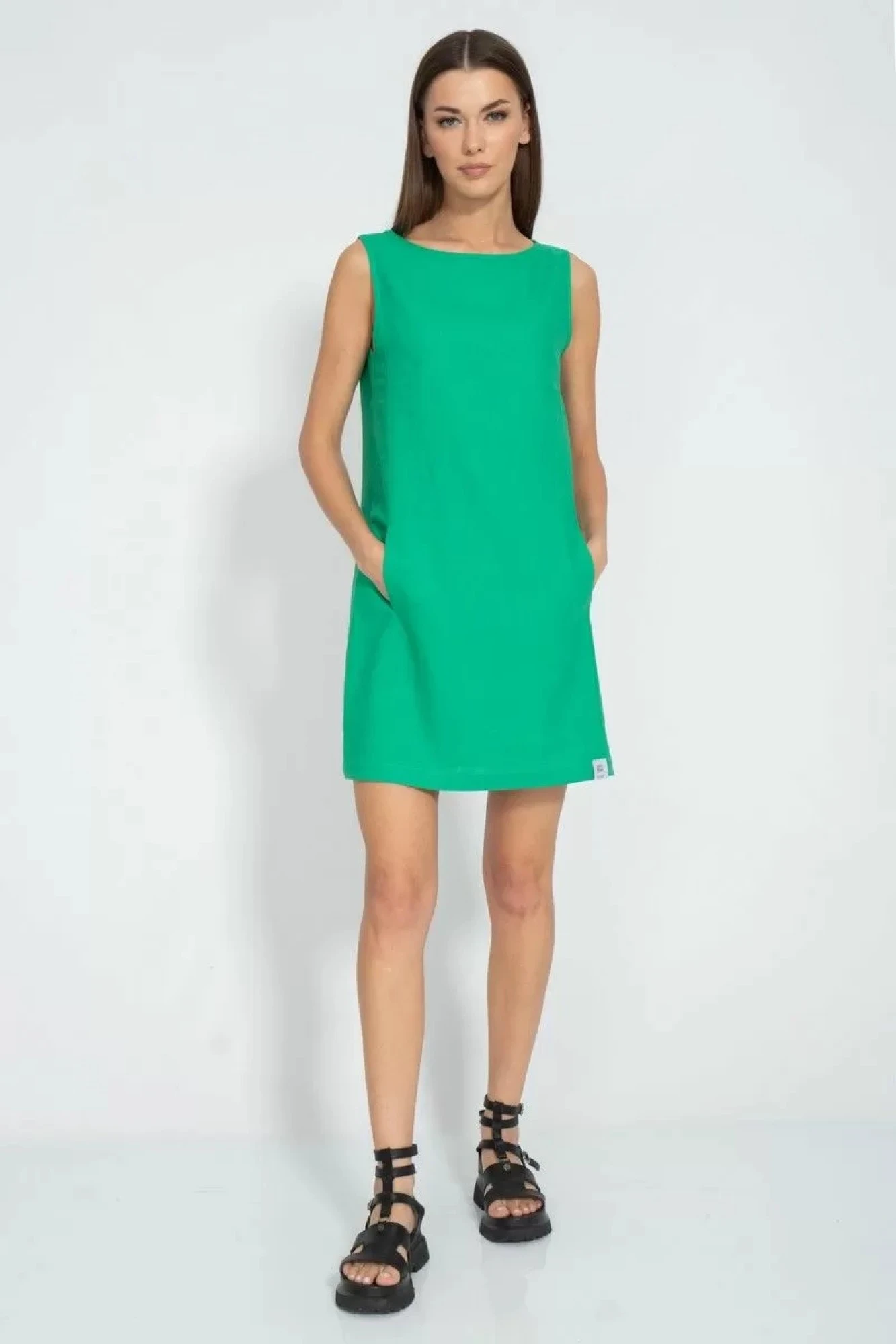 Платье короткое с карманами в рельефах из льна с вискозой - это модное и удобное платье для повседневной носки. Это платье имеет прямой крой, короткие рукава и круглый вырез горловины. Платье украшено карманами в рельефах, которые придают ему оригинальность и функциональность. Лен с вискозой - это натуральная ткань, которая хорошо дышит, не мнется и приятна к телу. Платье короткое с карманами в рельефах можно комбинировать с разной обувью и аксессуарами, создавая свежие и яркие образы