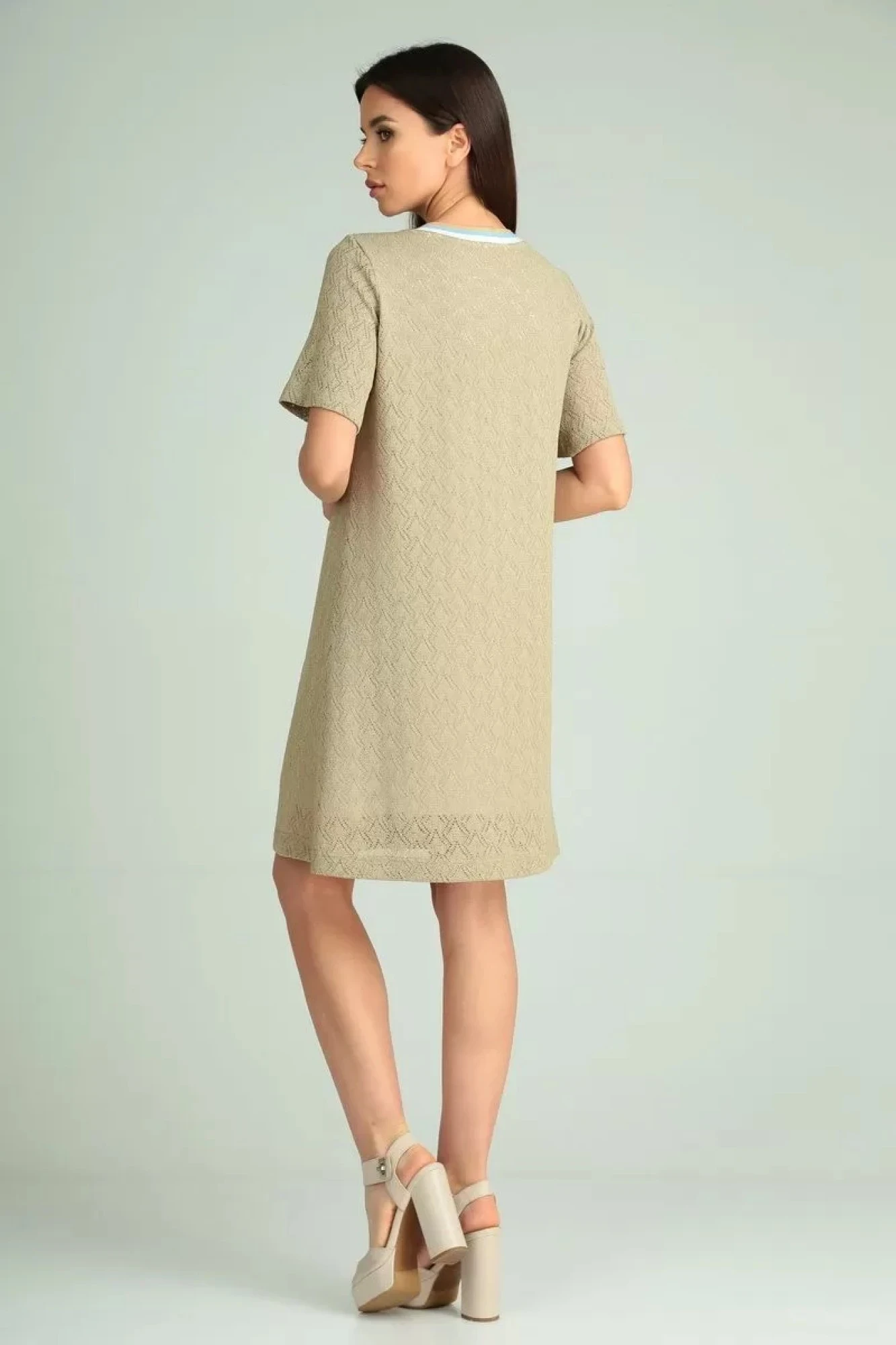Универсальное летнее платье, которое прекрасно вольется в Вашу повседневную жизнь и для праздников. Двухслойное платье средней длинны, прямого свободного кроя выполнено из приятной на ощупь ткани. Подкладка облегченная из тонкого мягкого трикотажа — идеально подойдёт для жаркого лета. Поверх подкладки кружевной трикотаж. Рукав короткий, горловина из контрастного довяза. Универсальность кроя сделают его любимым изделием Вашего гардероба в наступающем сезоне.