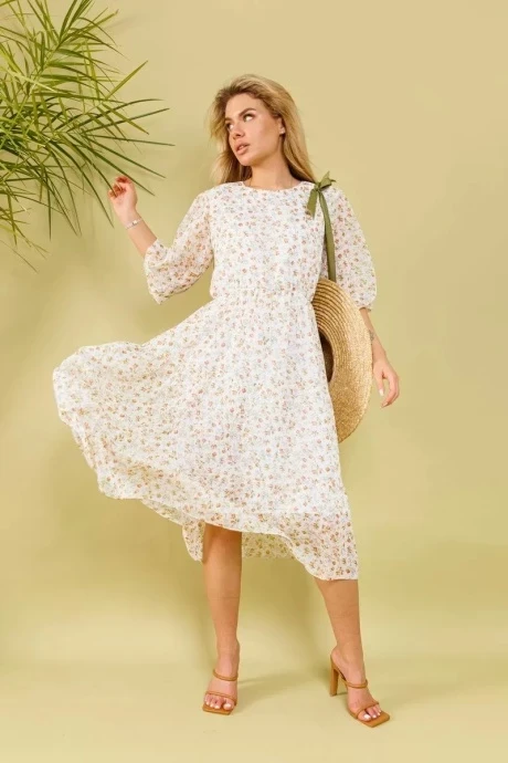 Шифоновое платье NikVa 366-3д молоко+рыжие цветы
